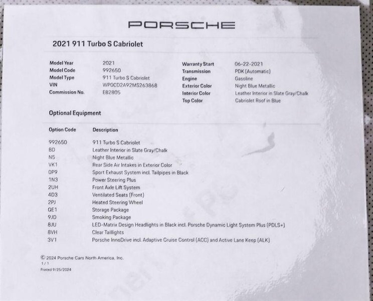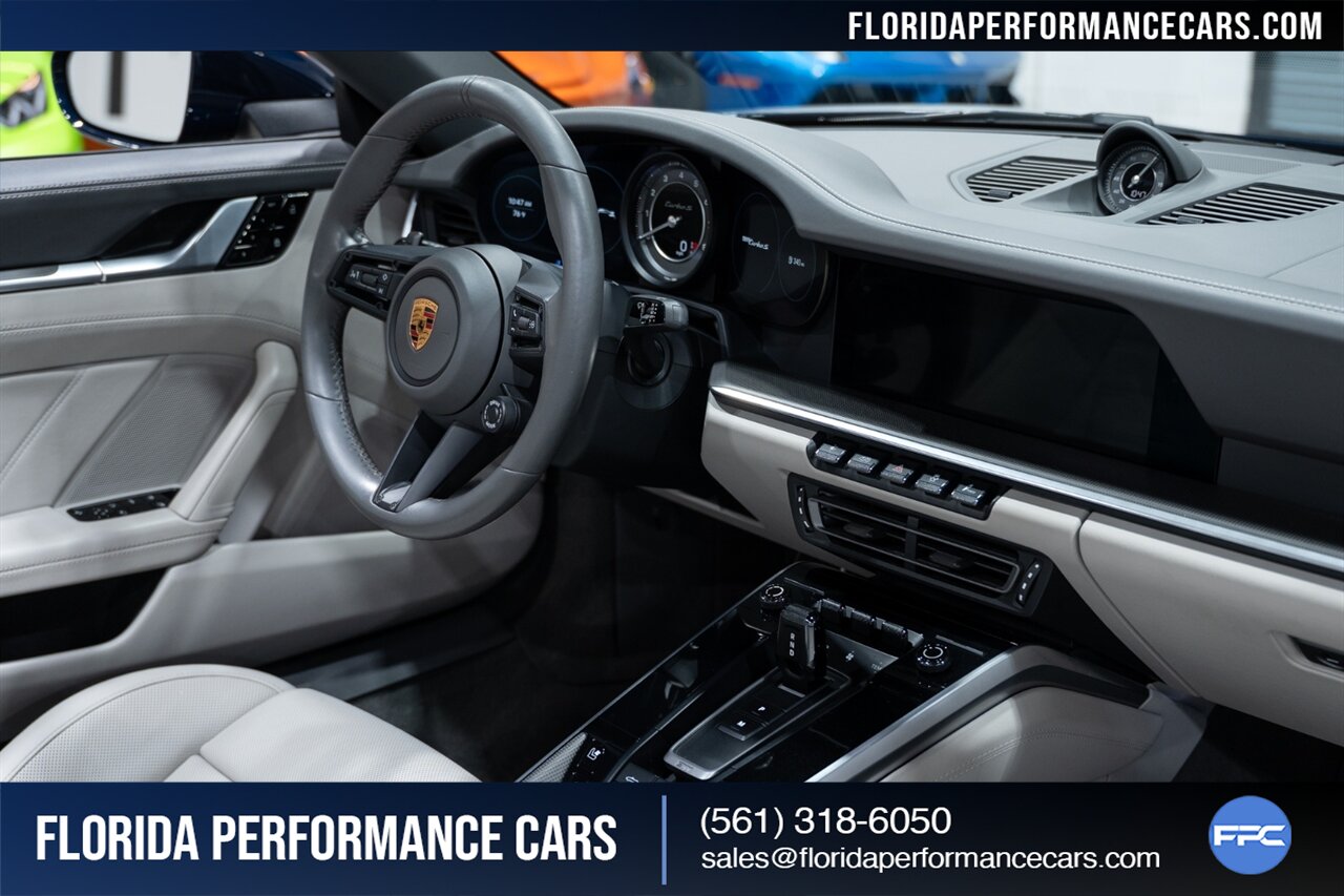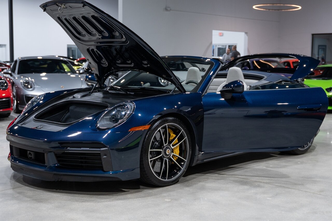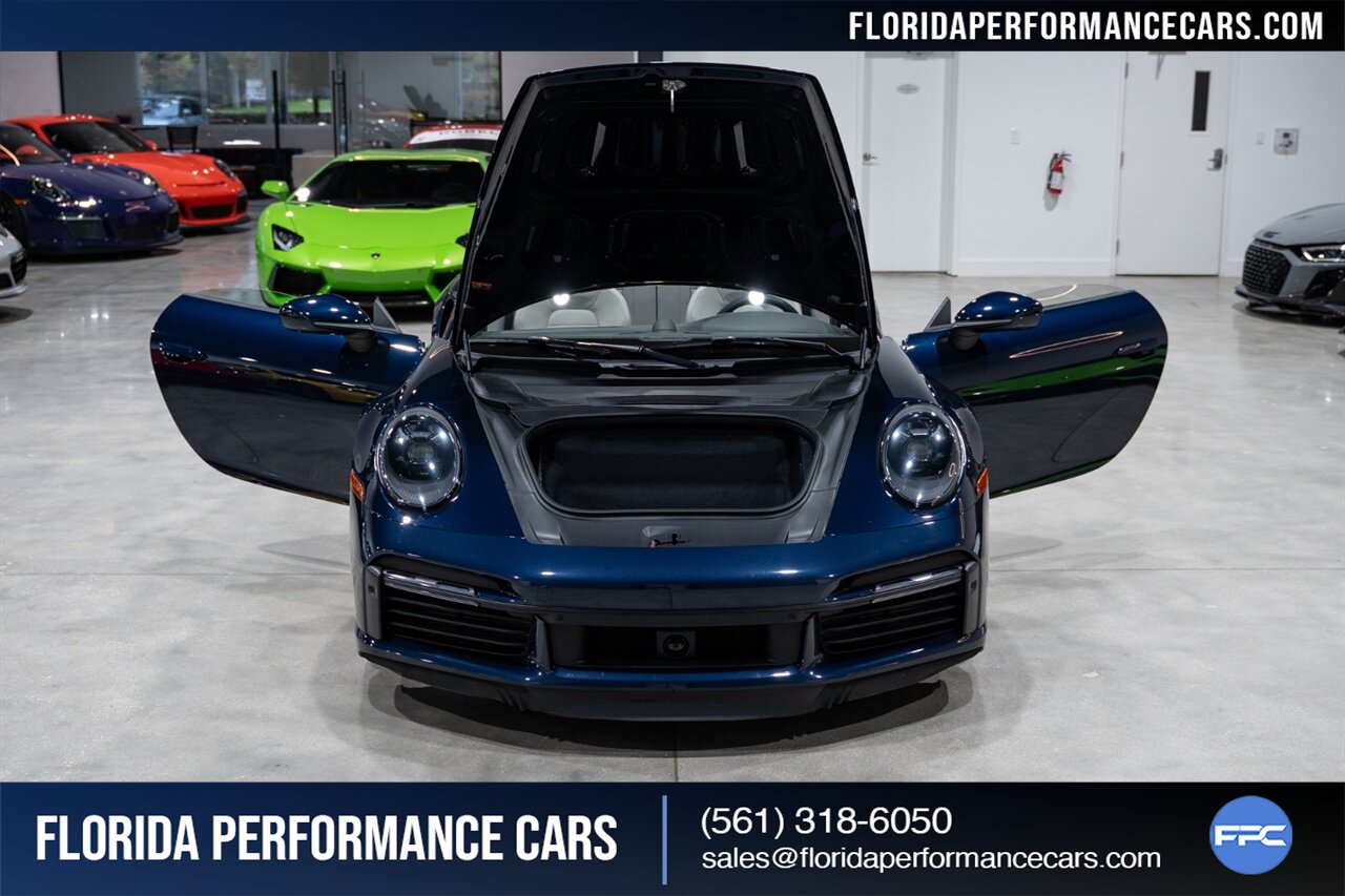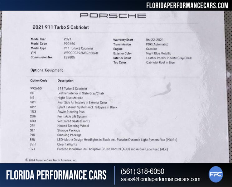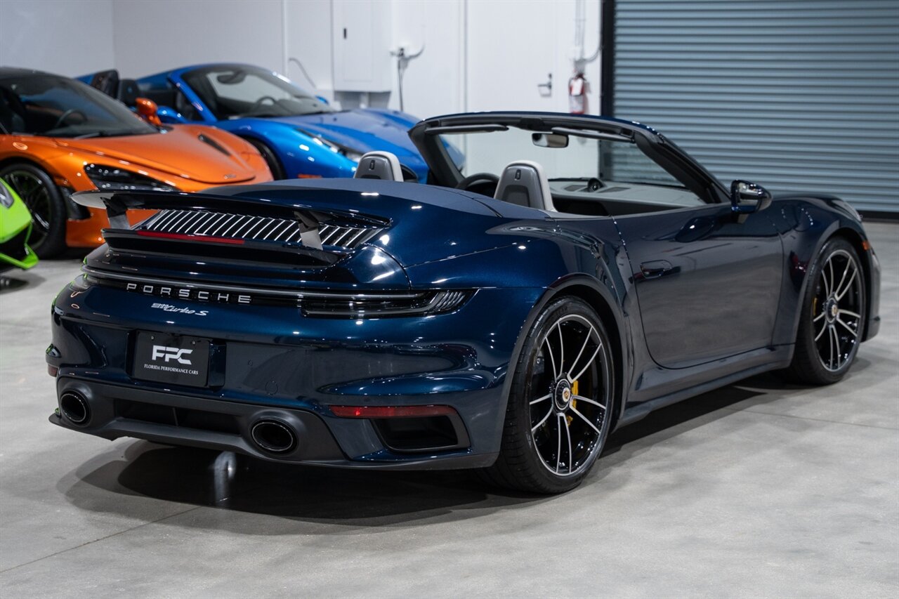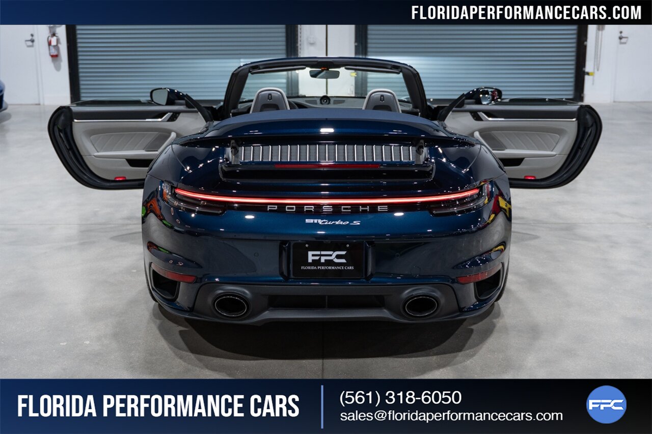 Florida Performance Cars is pleased to announce the arrival of this STUNNING 2021 Porsche 911 Turbo S Cabriolet finished in Night Blue Metallic over Leather Interior in Slate Gray and Chalk w/ 18,048 miles.