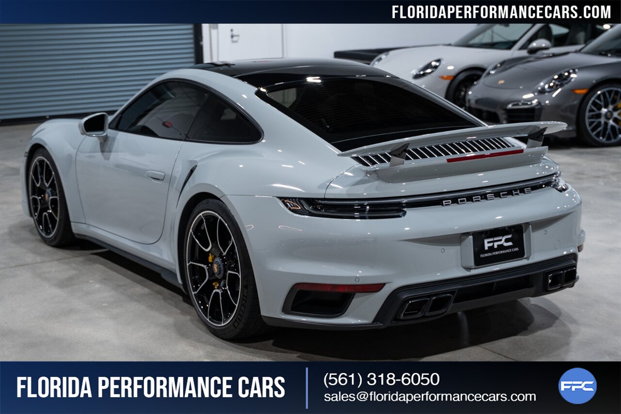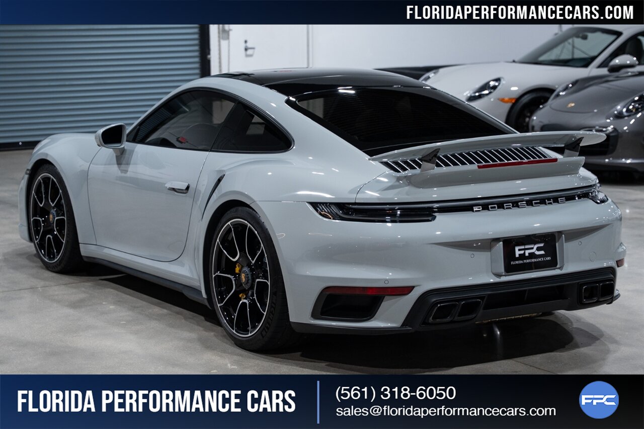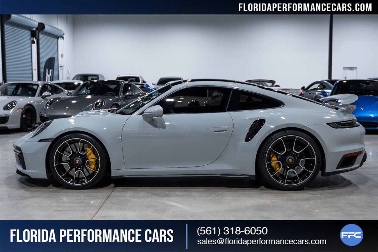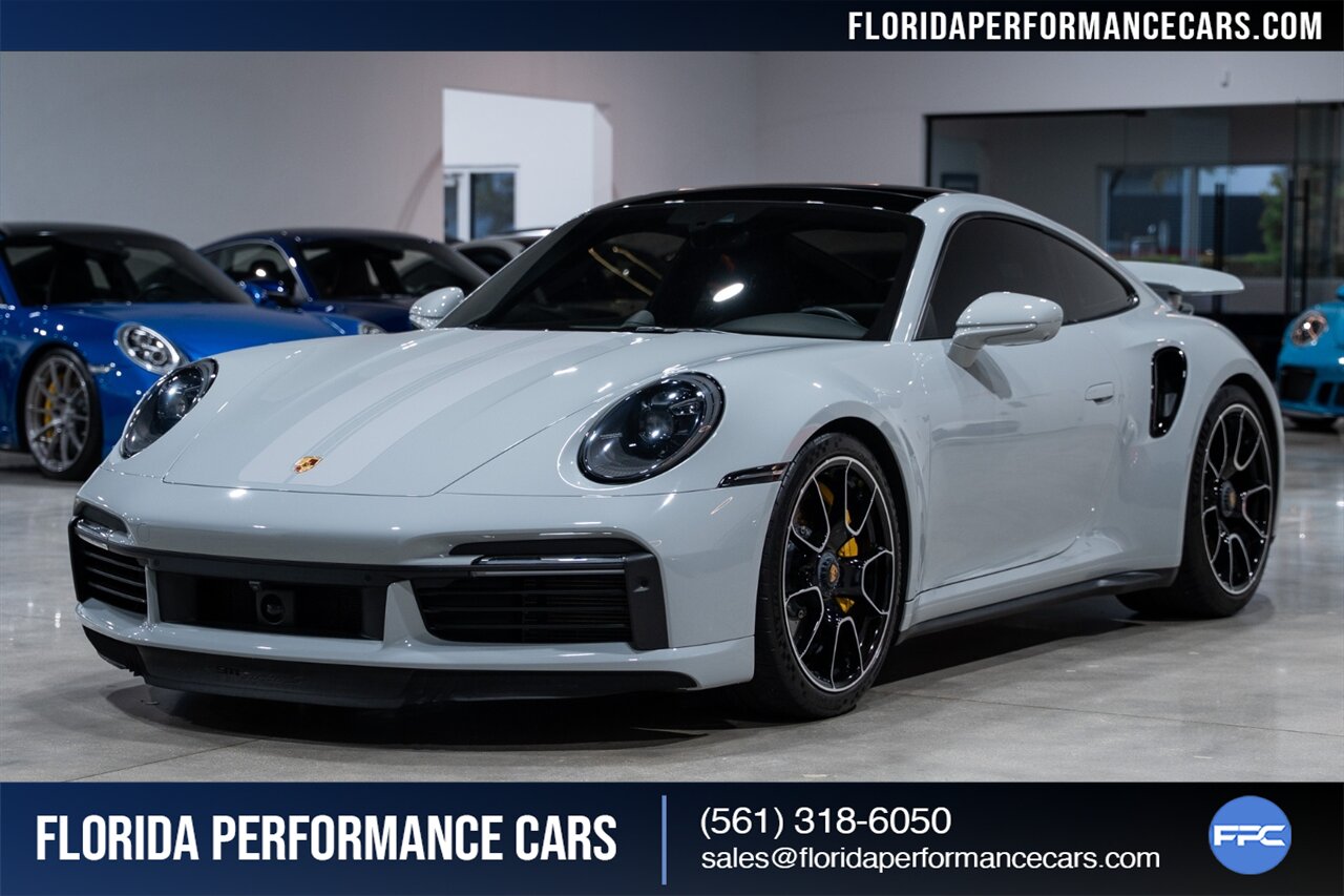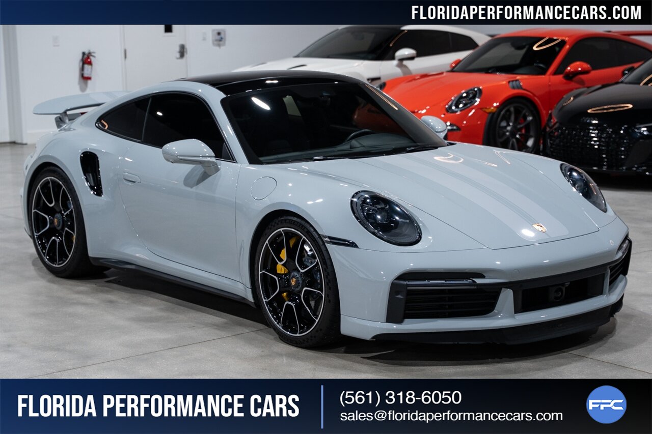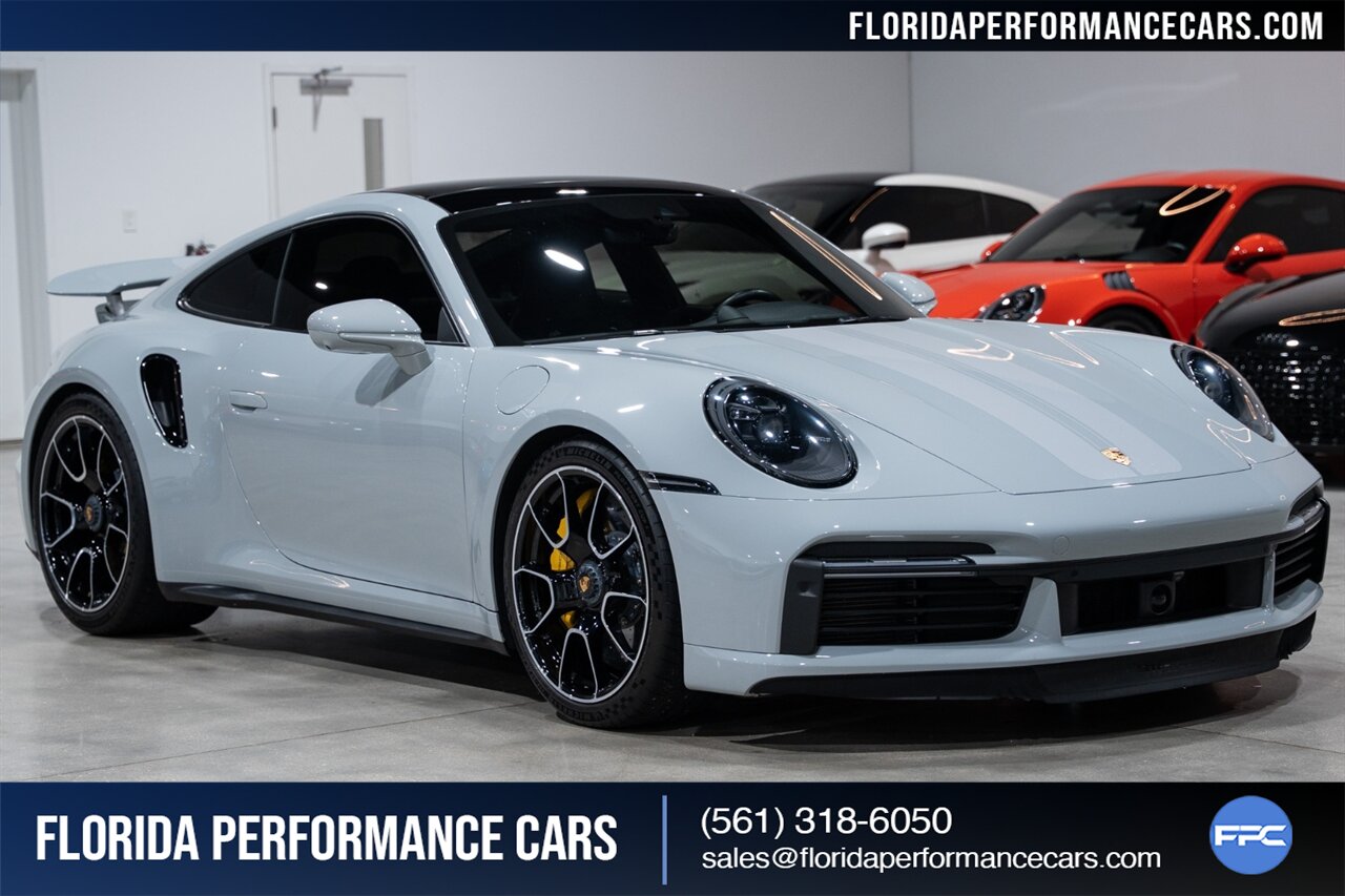 Florida Performance Cars is pleased to announce the arrival of this STUNNING 2021 Porsche 911 Turbo S finished in Paint to Sample SPORT CLASSIC GREY over Exclusive Manufaktur Leather Interior in Black and Slate Grey w/ 16,754 miles. This is a Clean CARFAX, pristine condition and exceptionally well optioned 992 Turbo S Coupe.