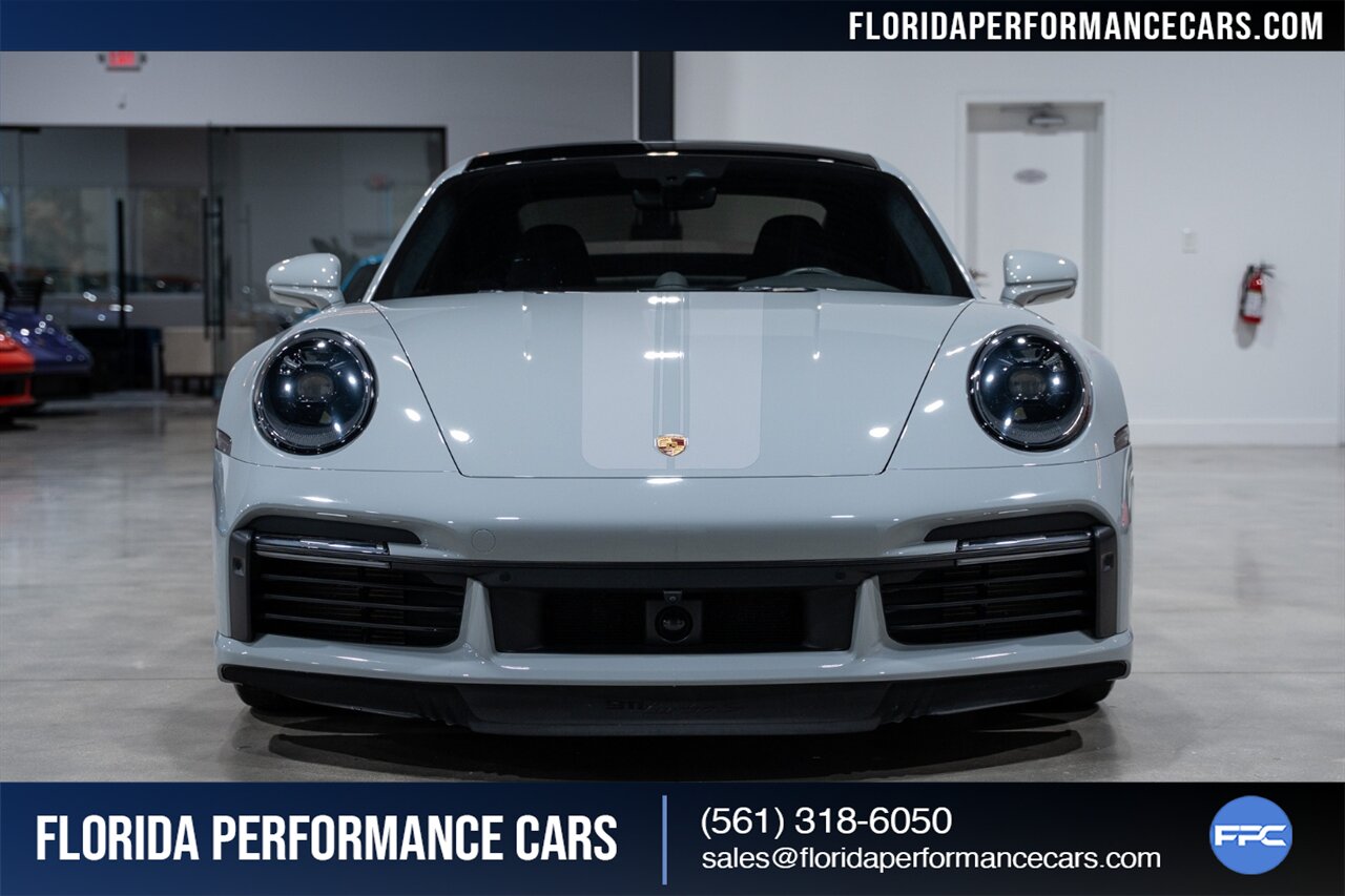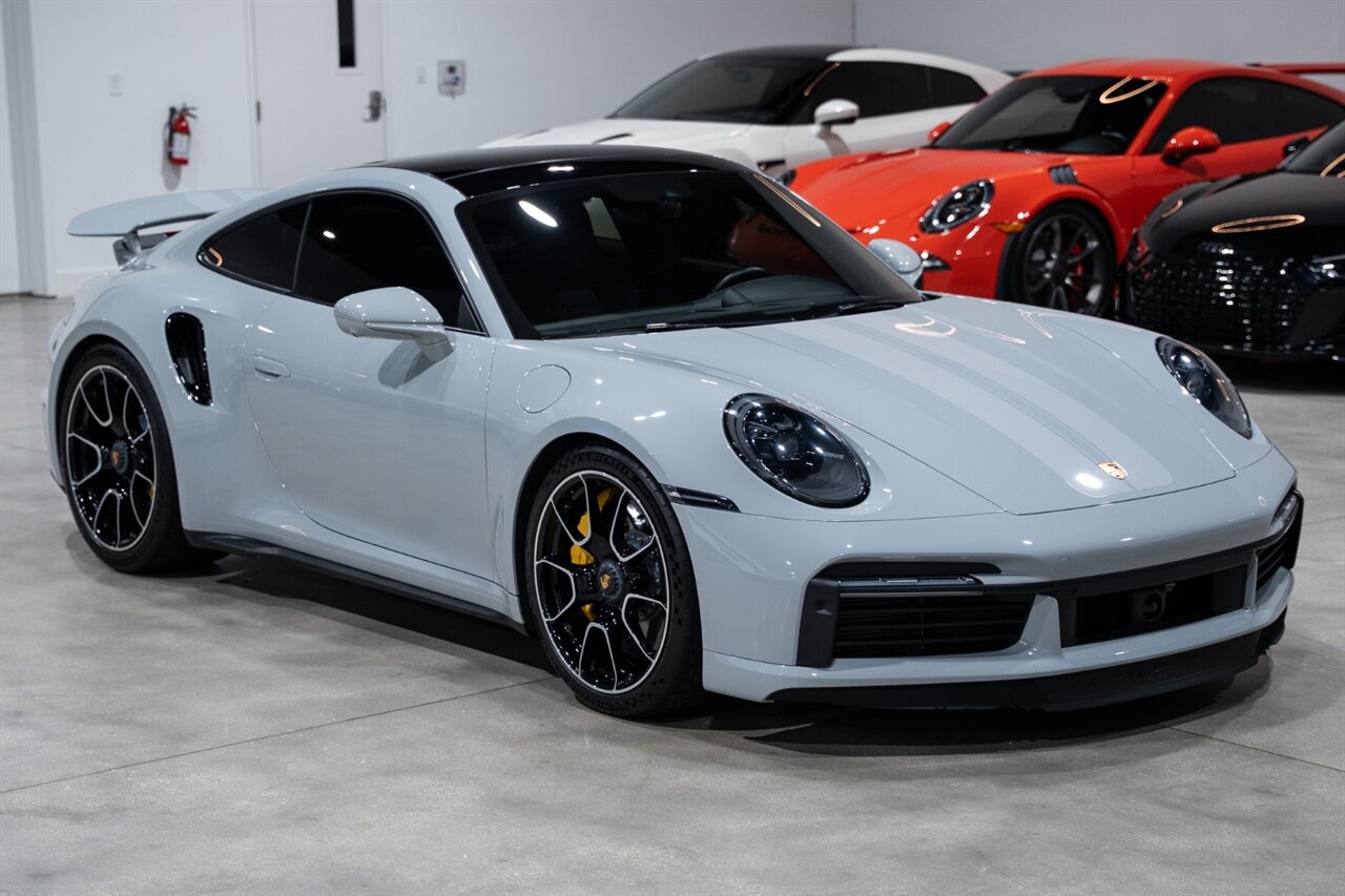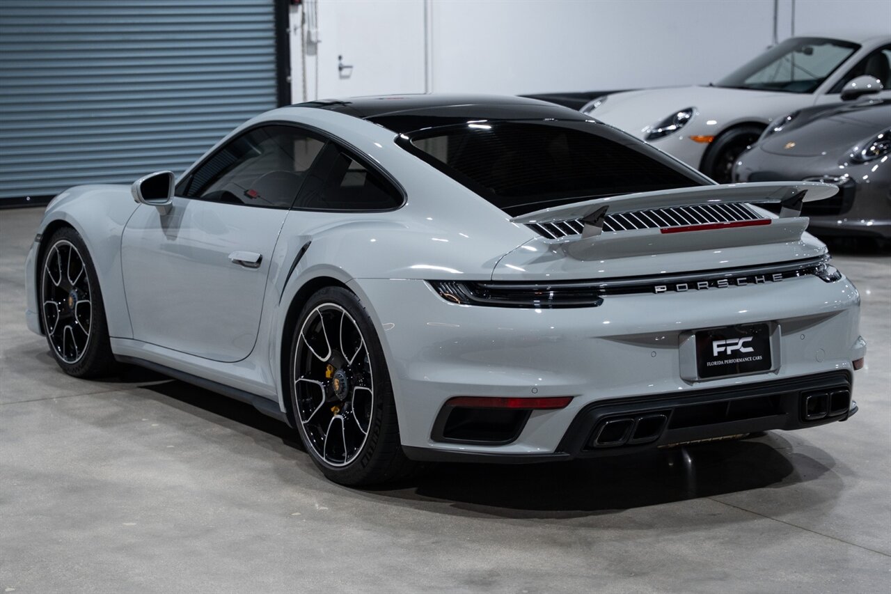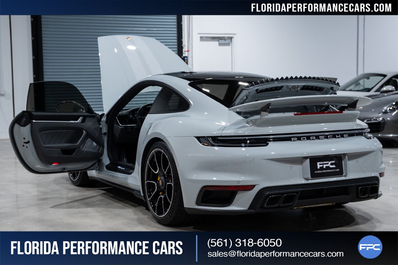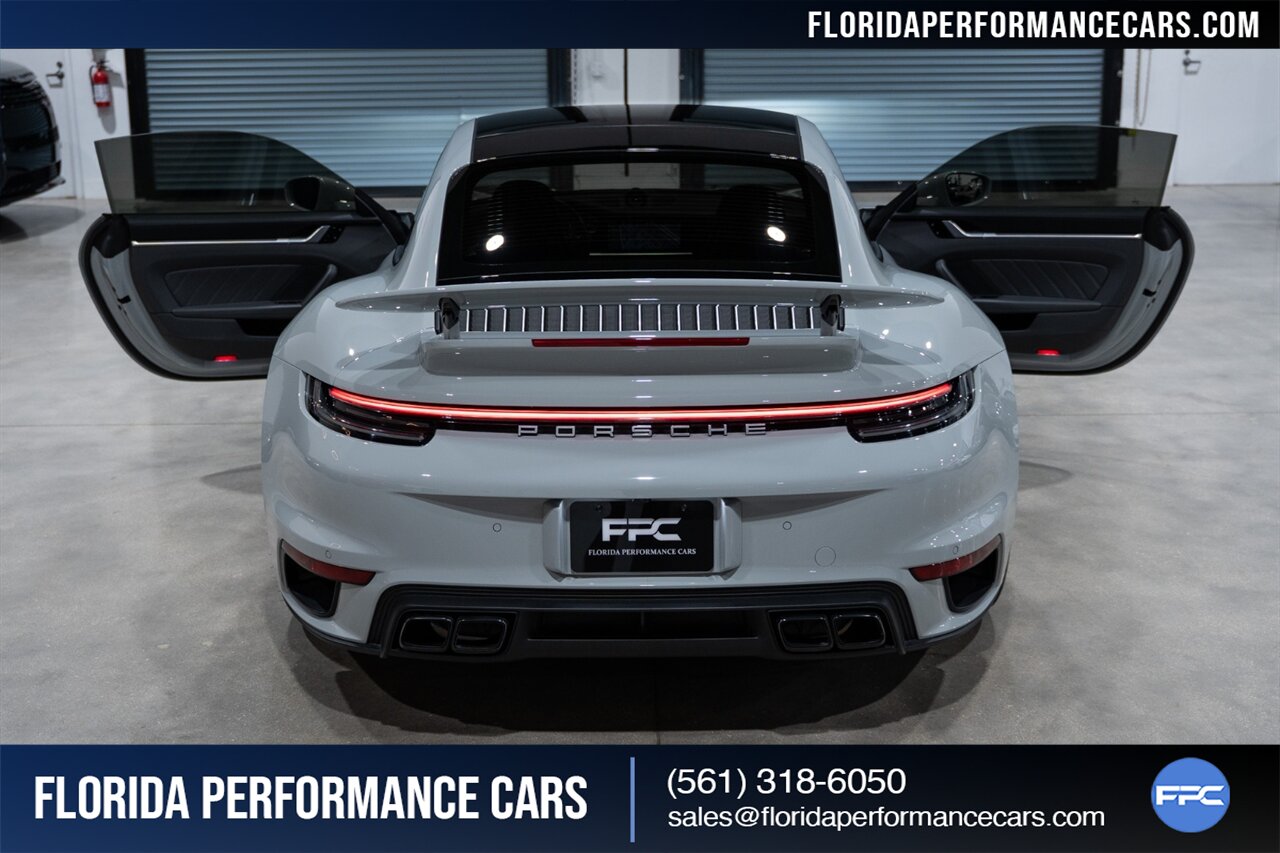 Florida Performance Cars is pleased to announce the arrival of this STUNNING 2021 Porsche 911 Turbo S finished in Paint to Sample SPORT CLASSIC GREY over Exclusive Manufaktur Leather Interior in Black and Slate Grey w/ 16,754 miles. This is a Clean CARFAX, pristine condition and exceptionally well optioned 992 Turbo S Coupe.