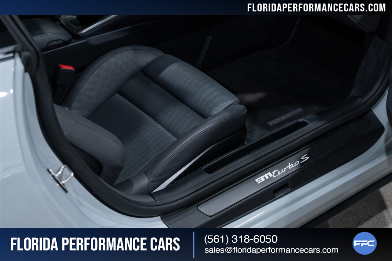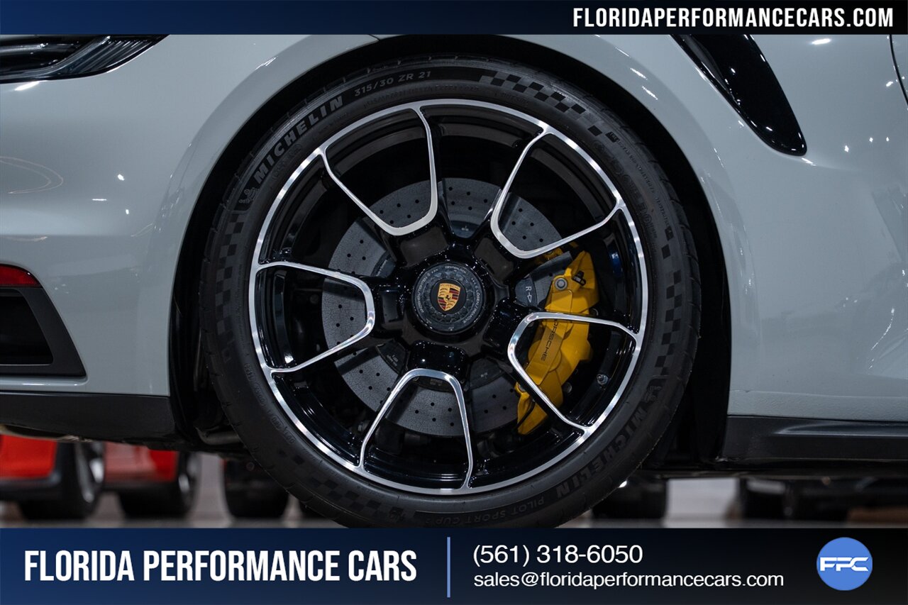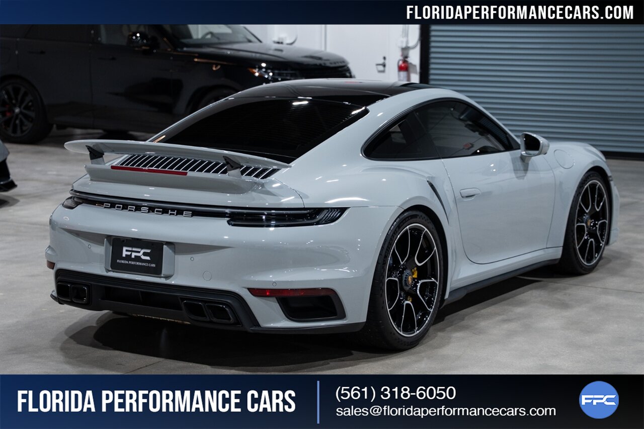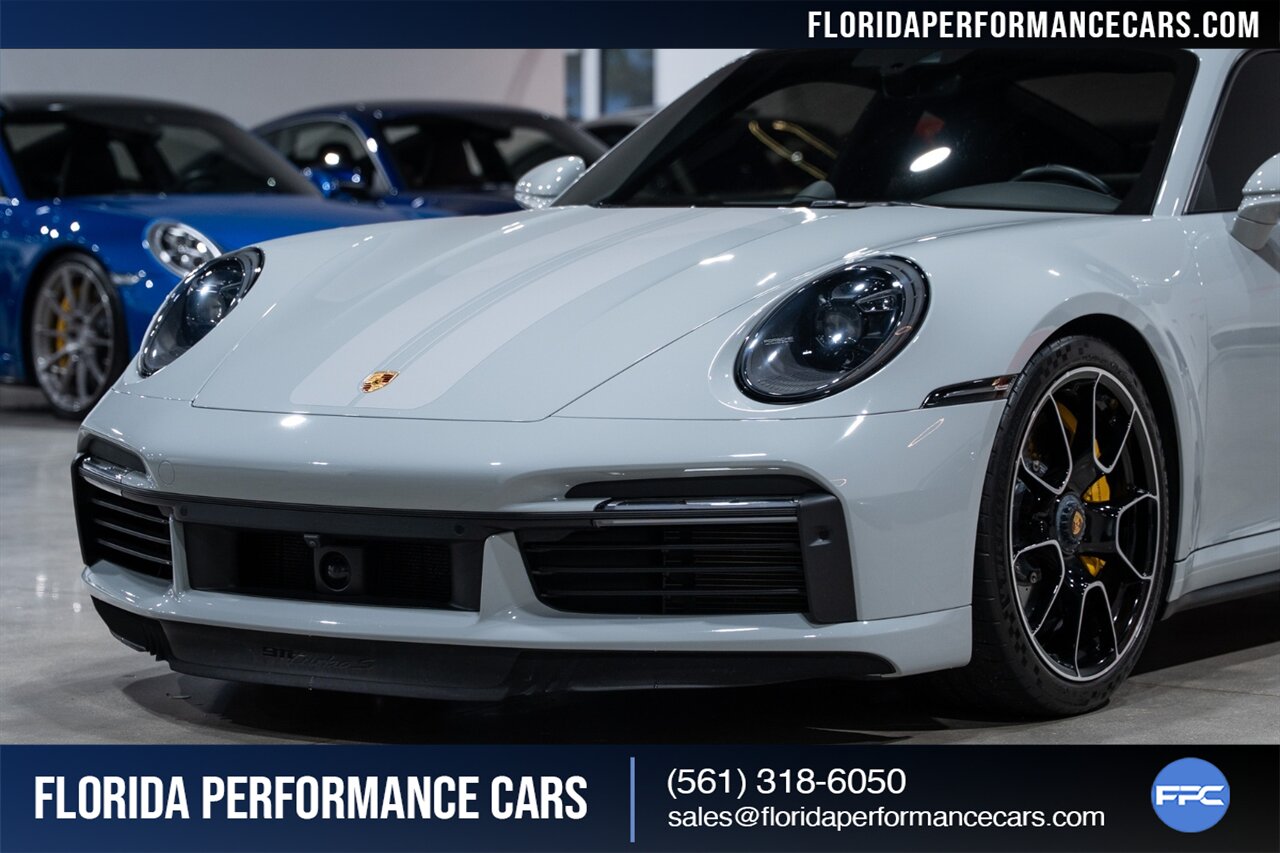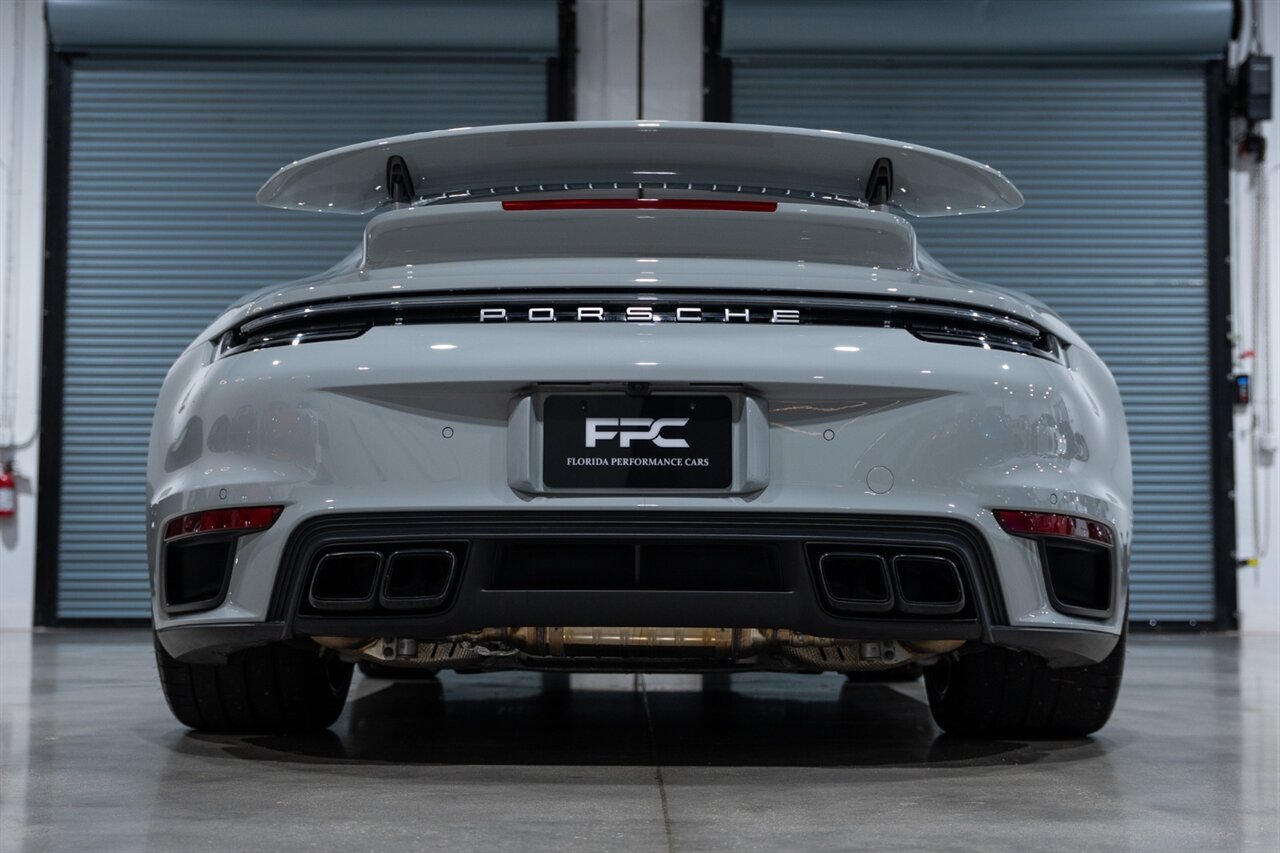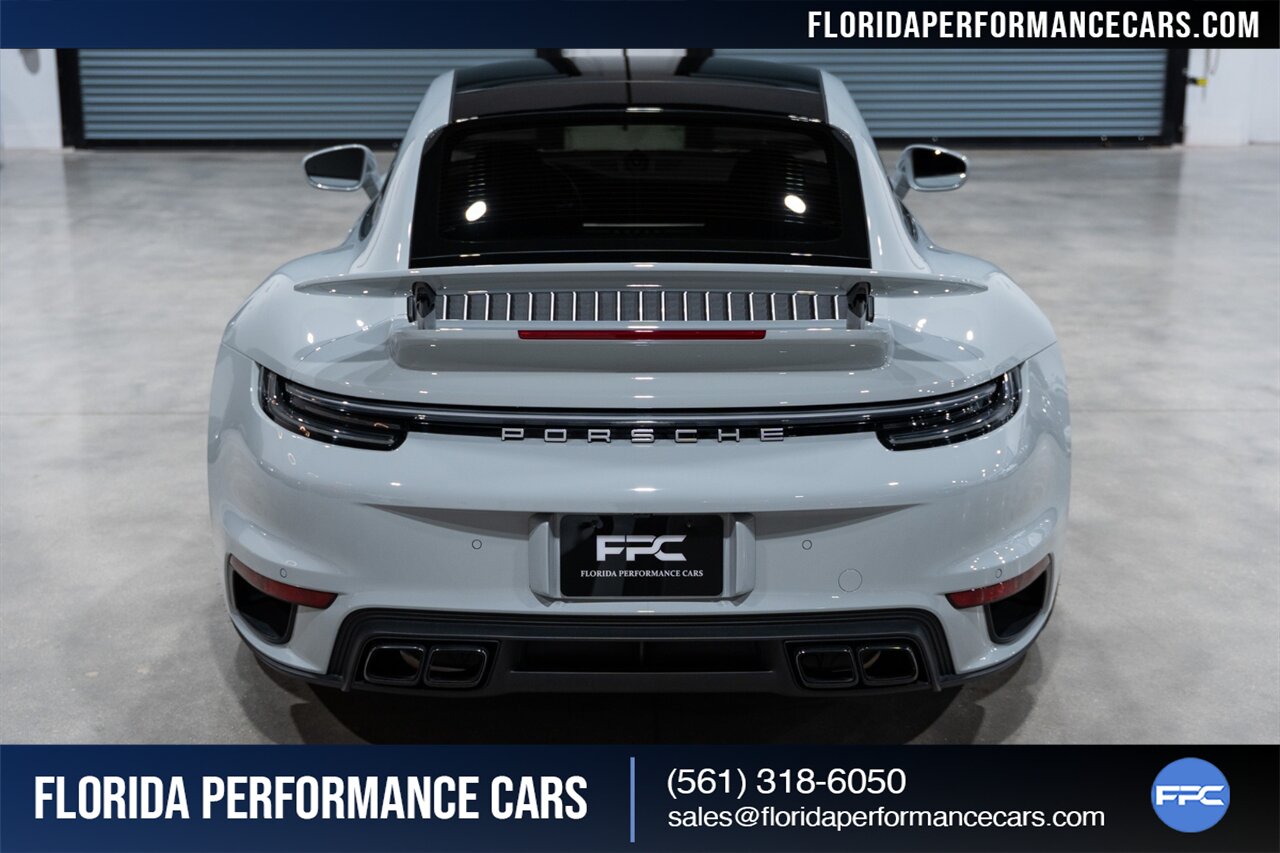 Florida Performance Cars is pleased to announce the arrival of this STUNNING 2021 Porsche 911 Turbo S finished in Paint to Sample SPORT CLASSIC GREY over Exclusive Manufaktur Leather Interior in Black and Slate Grey w/ 16,754 miles. This is a Clean CARFAX, pristine condition and exceptionally well optioned 992 Turbo S Coupe.