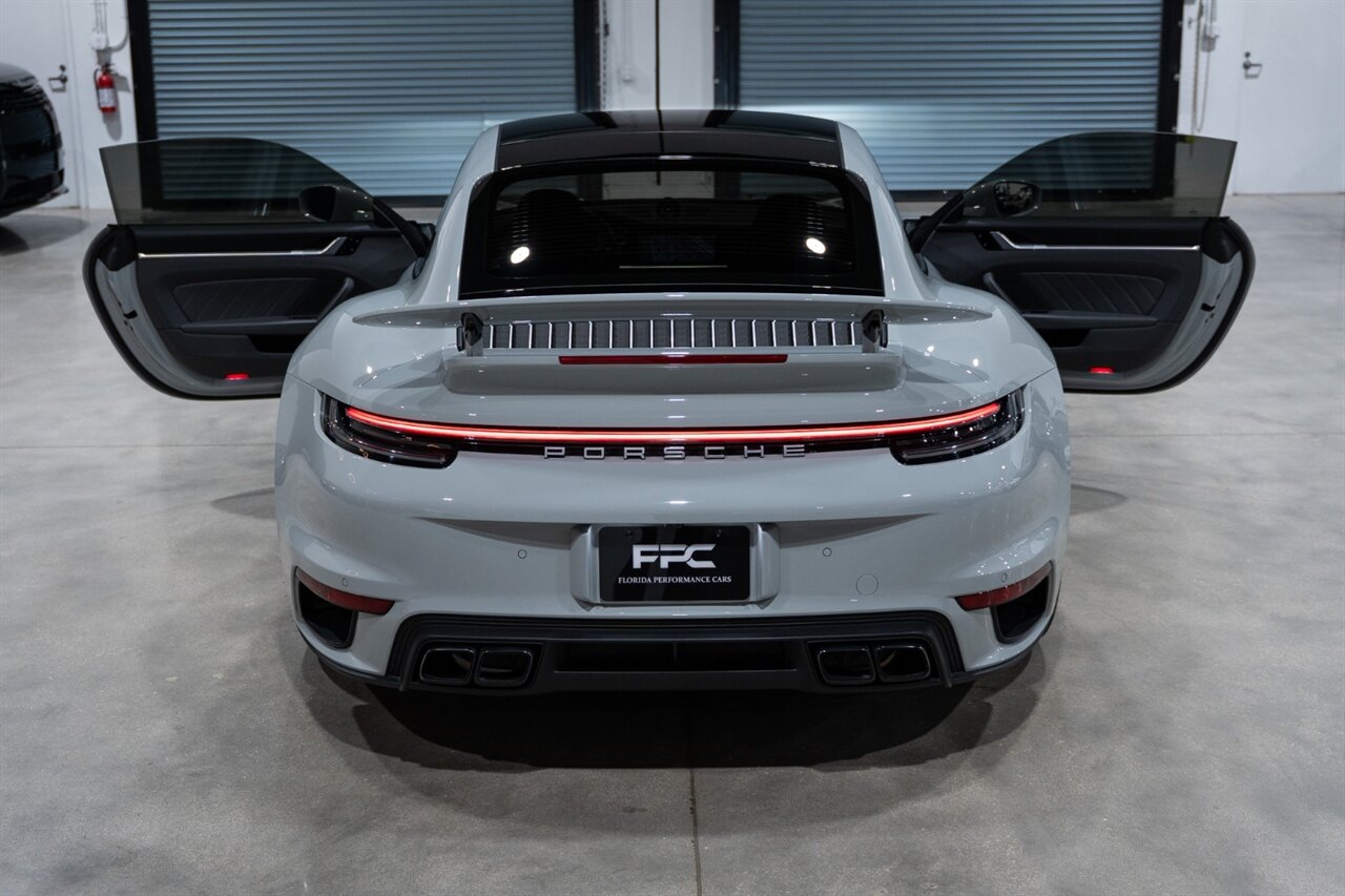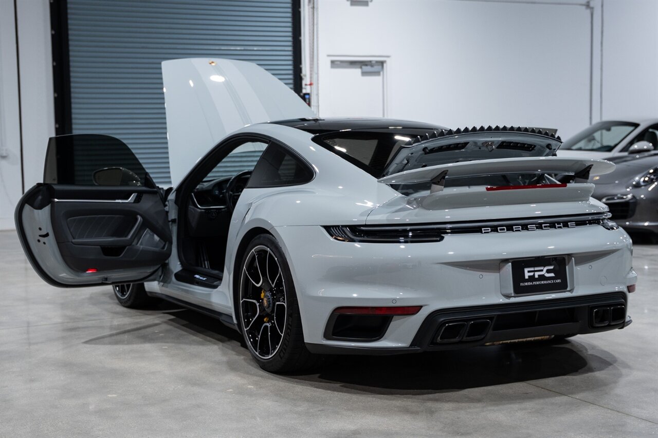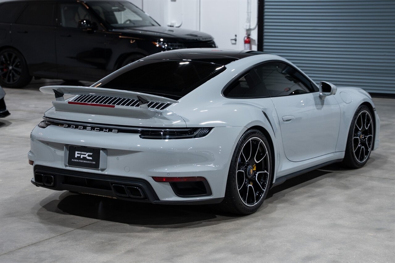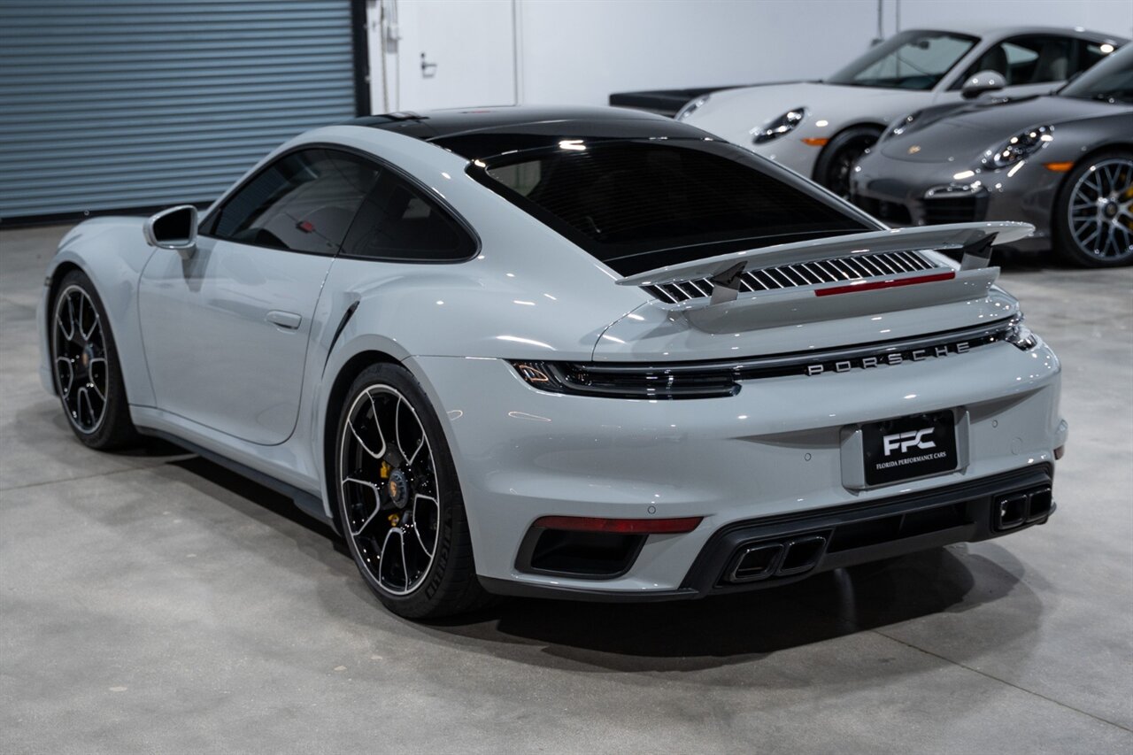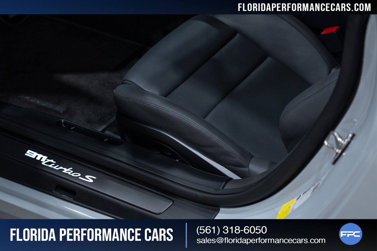 Florida Performance Cars is pleased to announce the arrival of this STUNNING 2021 Porsche 911 Turbo S finished in Paint to Sample SPORT CLASSIC GREY over Exclusive Manufaktur Leather Interior in Black and Slate Grey w/ 16,754 miles. This is a Clean CARFAX, pristine condition and exceptionally well optioned 992 Turbo S Coupe.