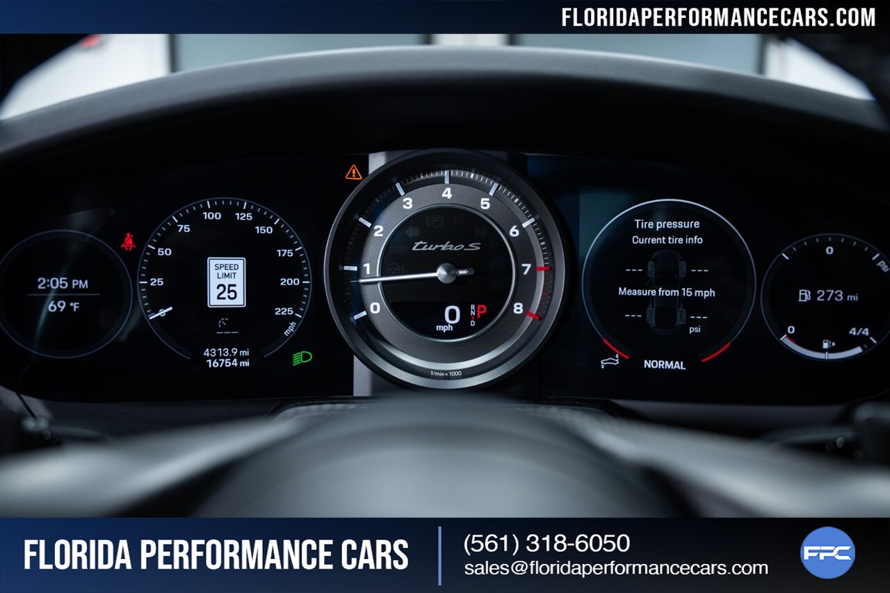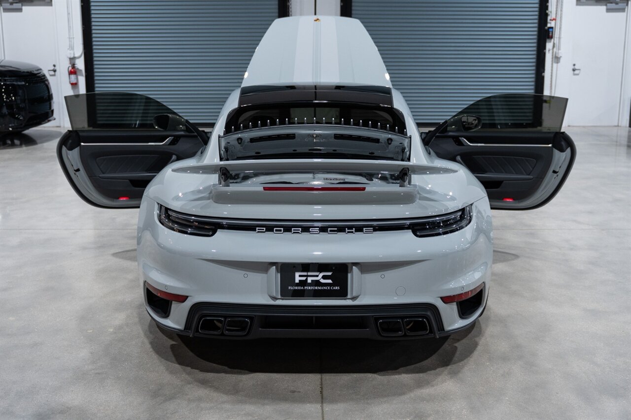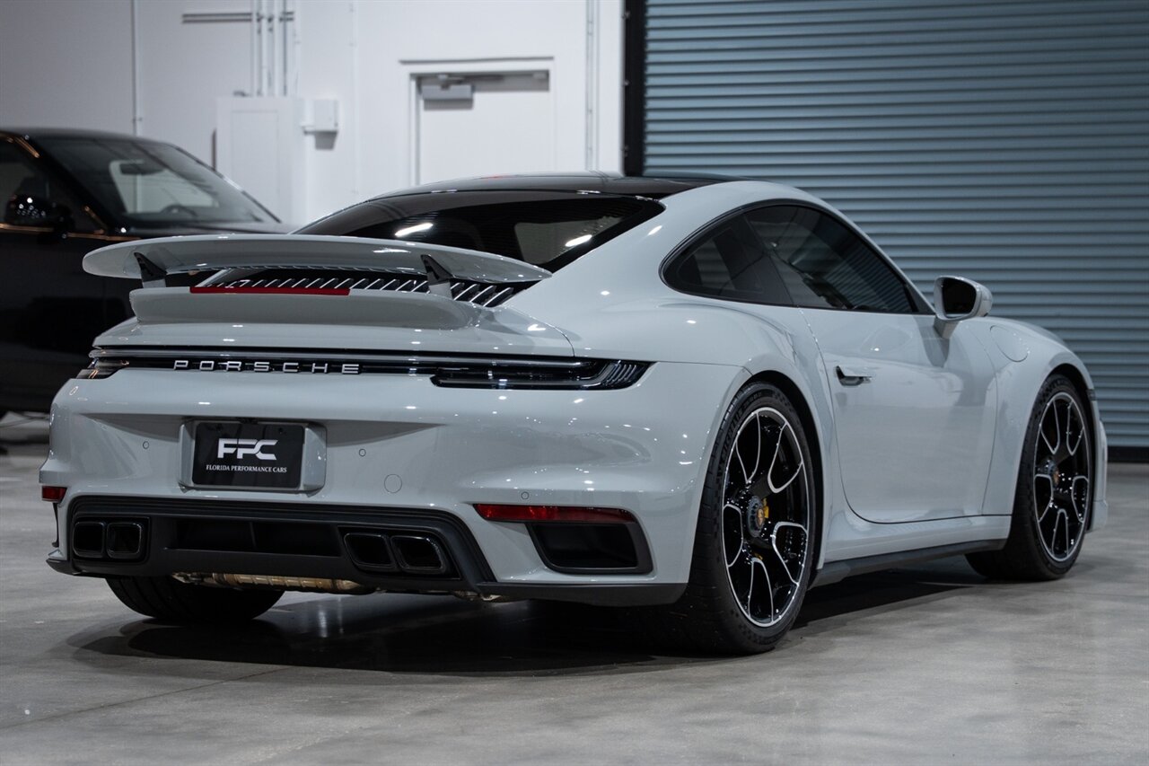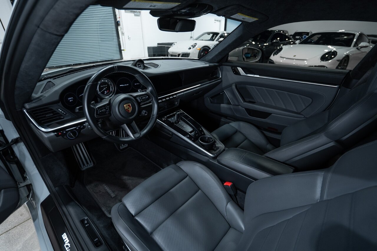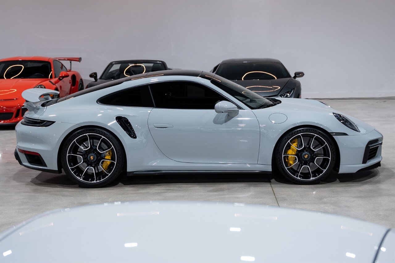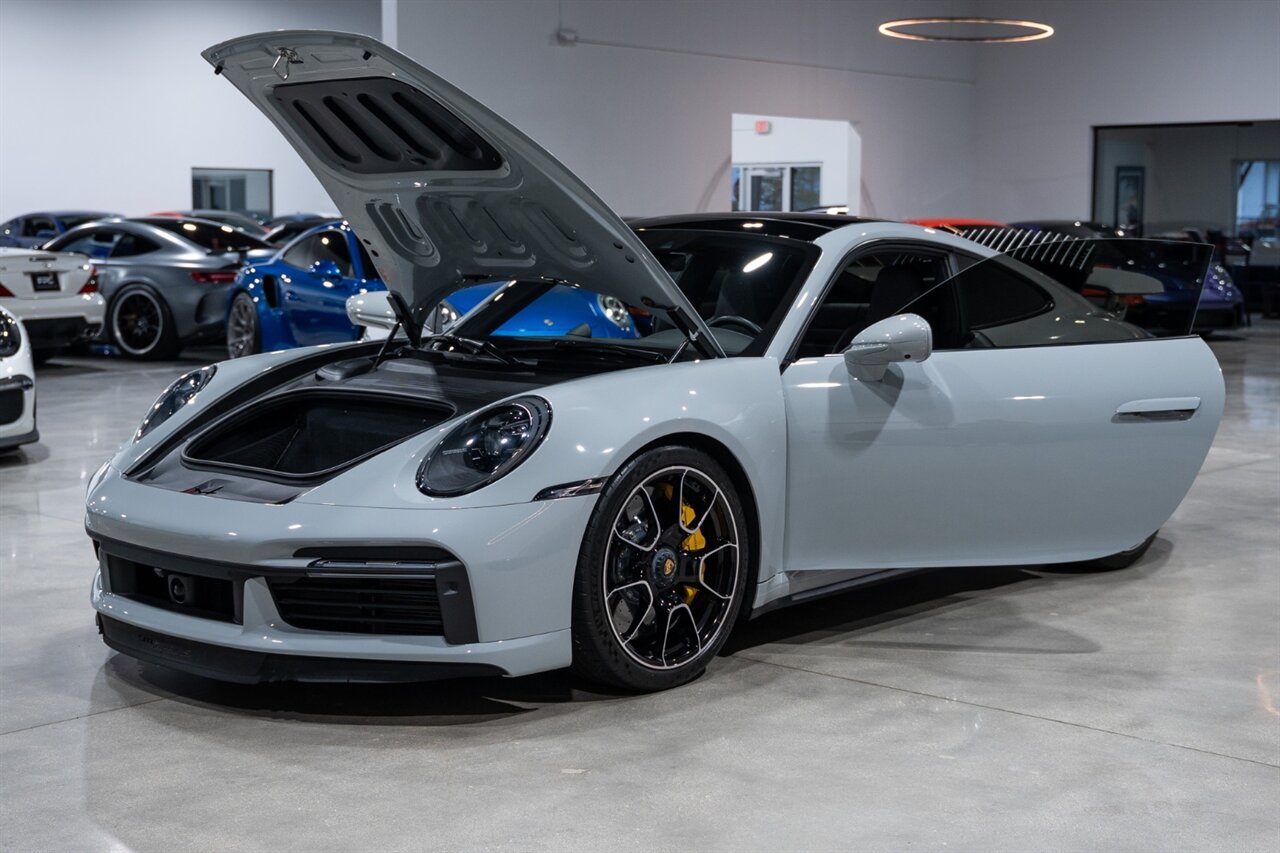 Florida Performance Cars is pleased to announce the arrival of this STUNNING 2021 Porsche 911 Turbo S finished in Paint to Sample SPORT CLASSIC GREY over Exclusive Manufaktur Leather Interior in Black and Slate Grey w/ 16,754 miles. This is a Clean CARFAX, pristine condition and exceptionally well optioned 992 Turbo S Coupe.