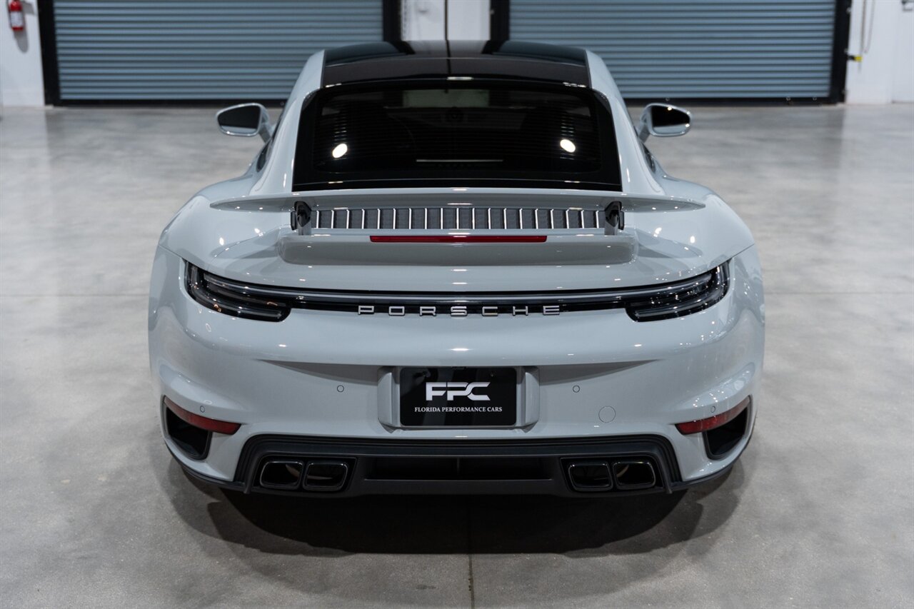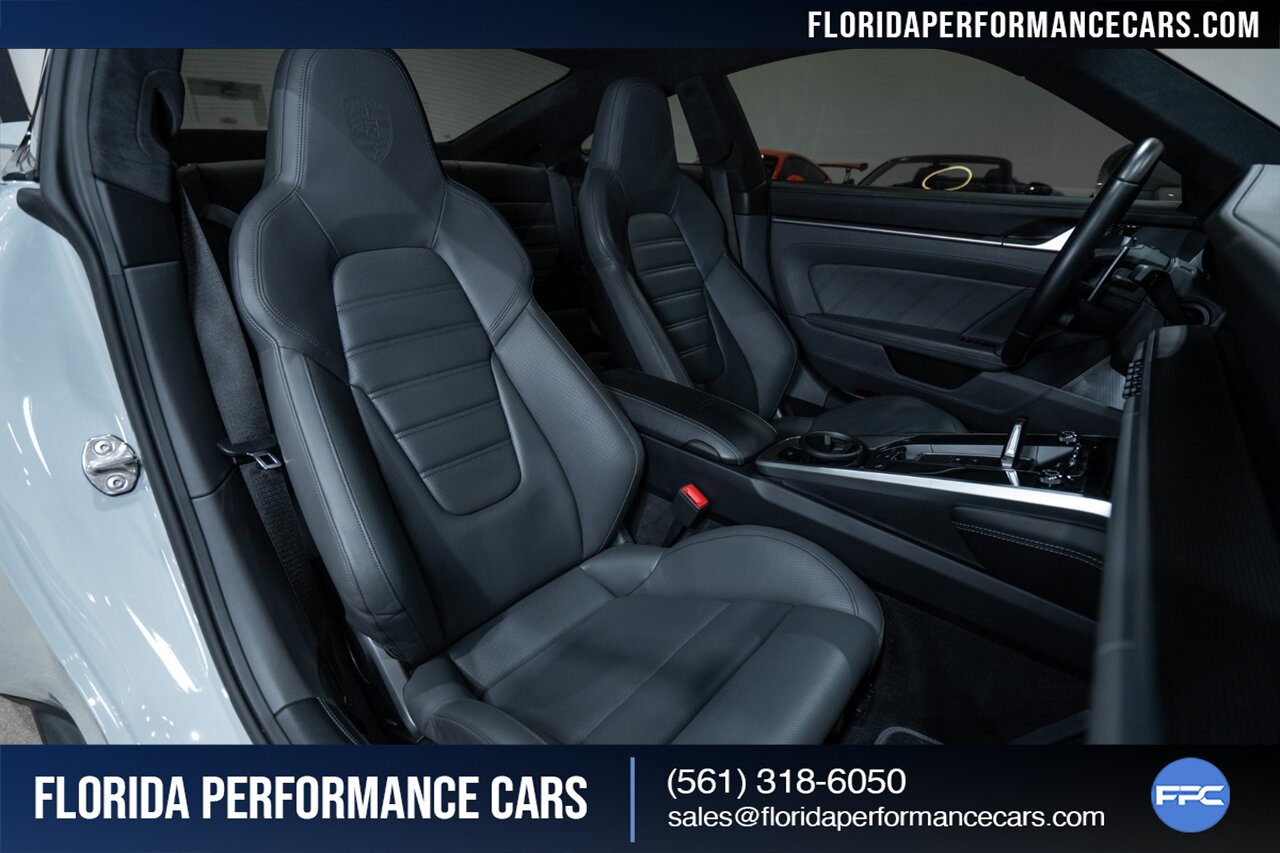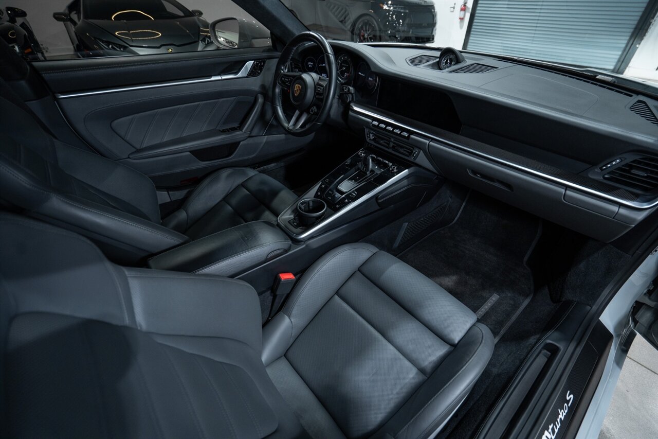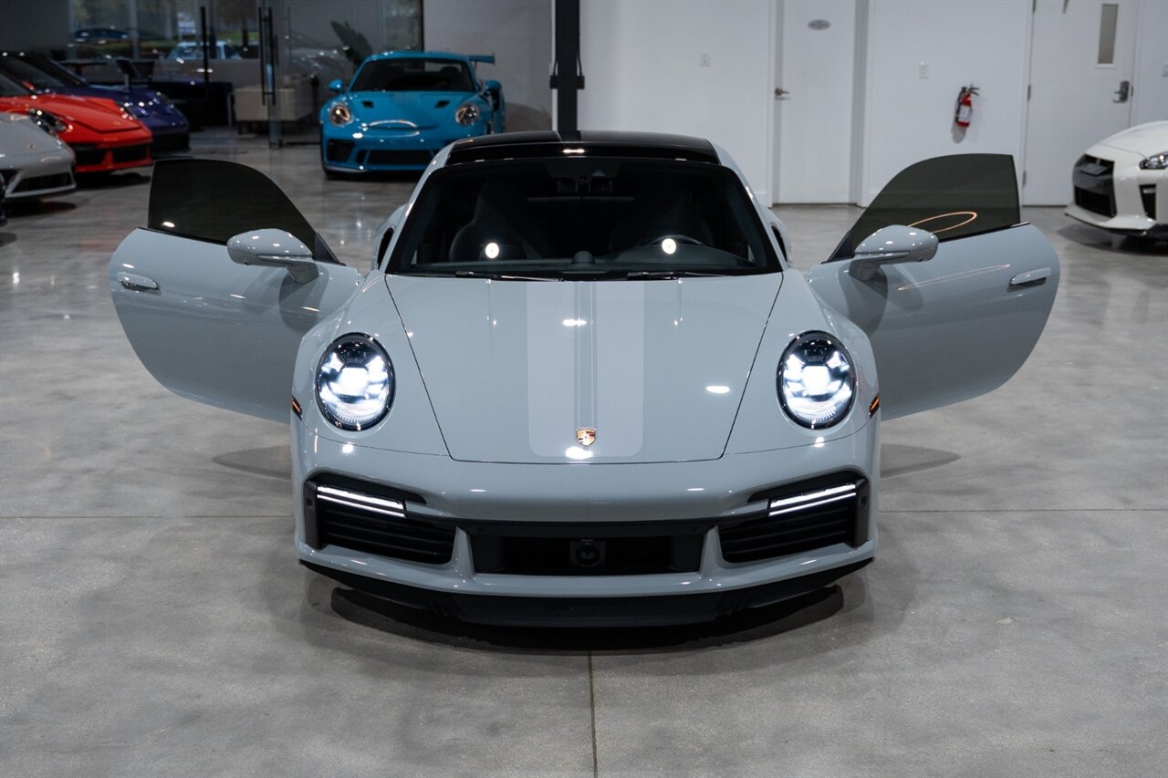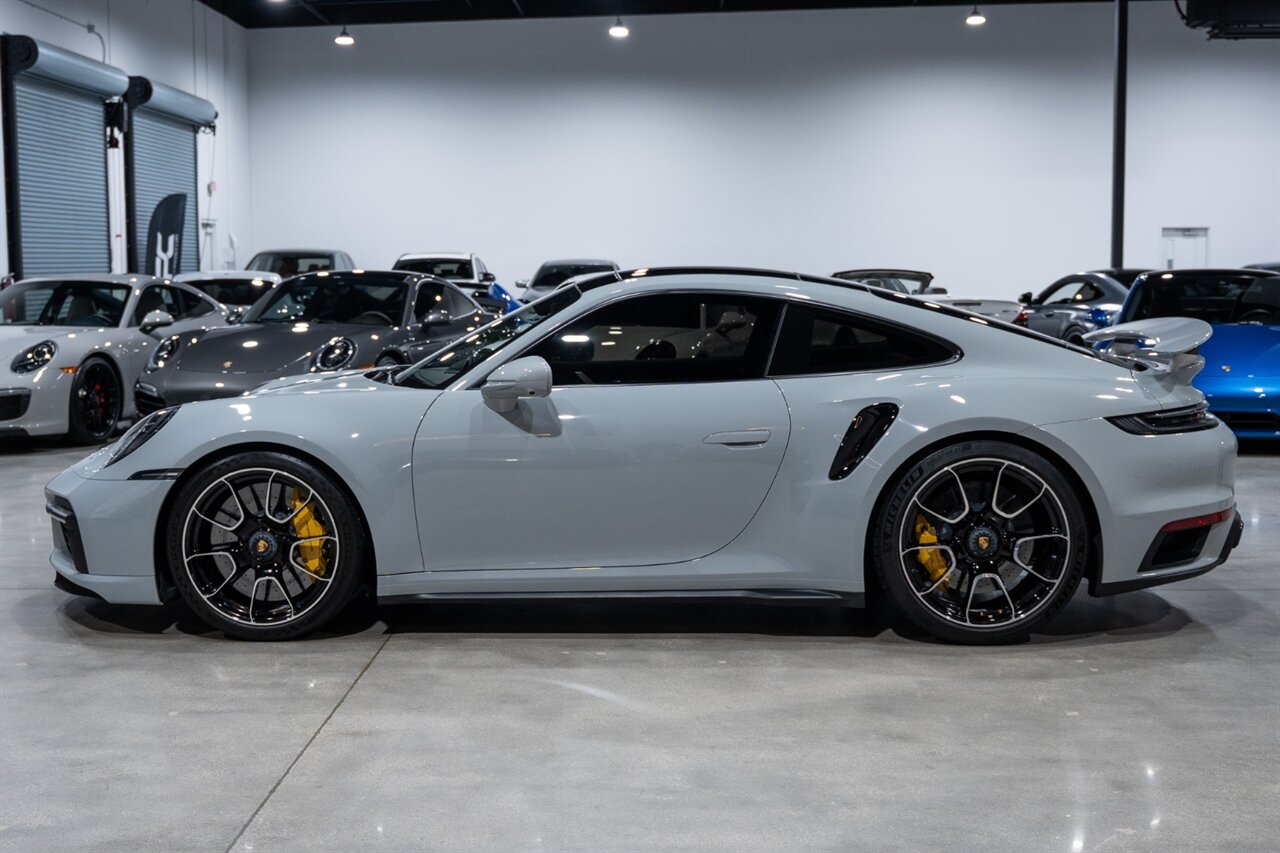 Florida Performance Cars is pleased to announce the arrival of this STUNNING 2021 Porsche 911 Turbo S finished in Paint to Sample SPORT CLASSIC GREY over Exclusive Manufaktur Leather Interior in Black and Slate Grey w/ 16,754 miles. This is a Clean CARFAX, pristine condition and exceptionally well optioned 992 Turbo S Coupe.