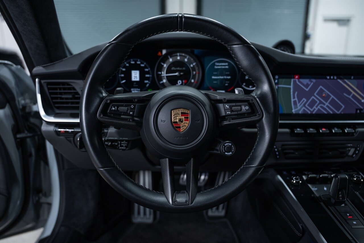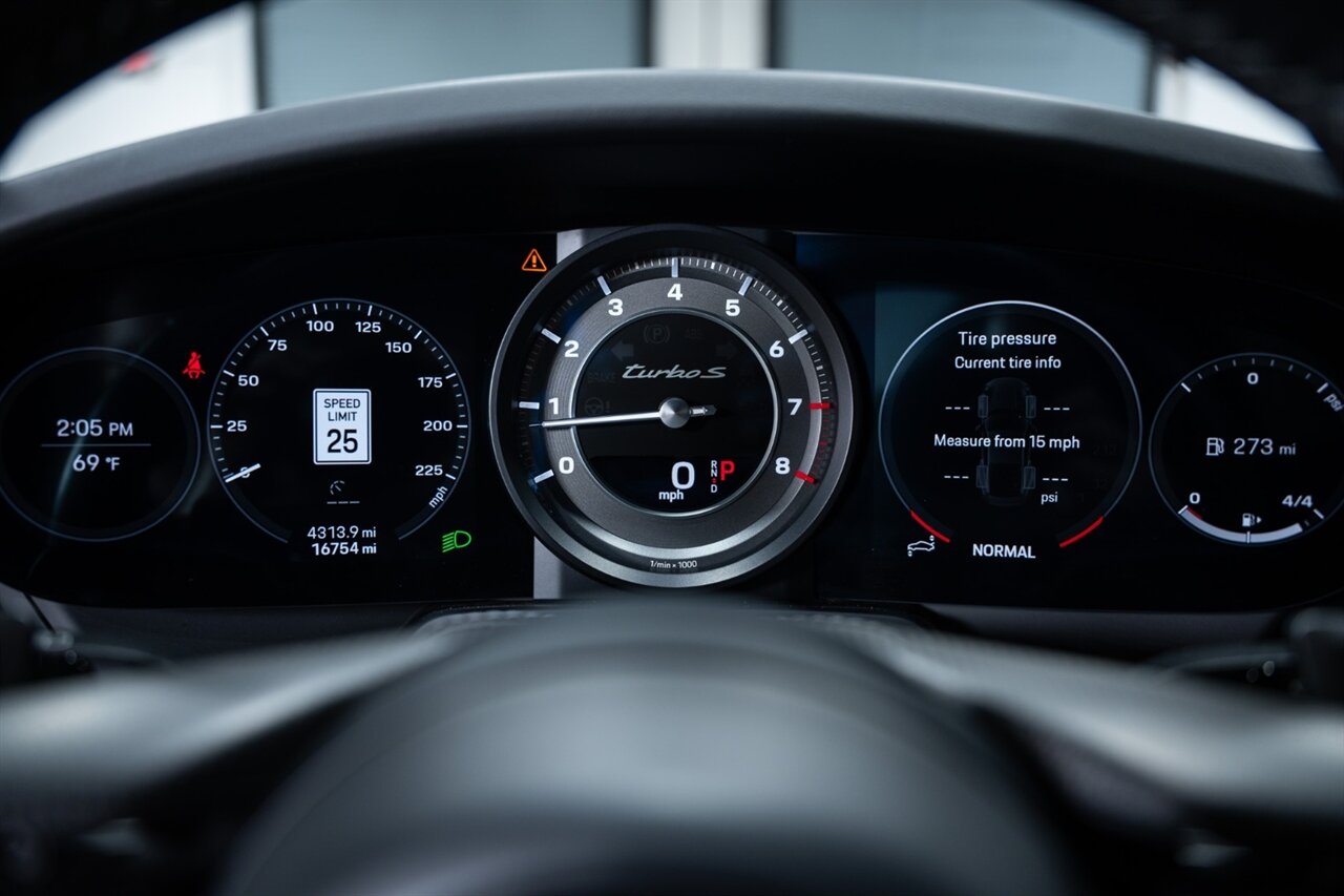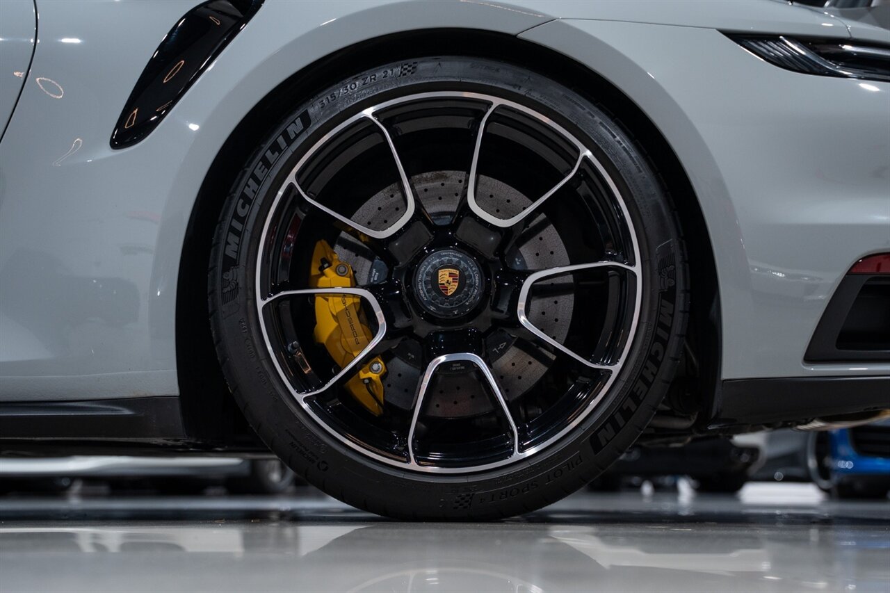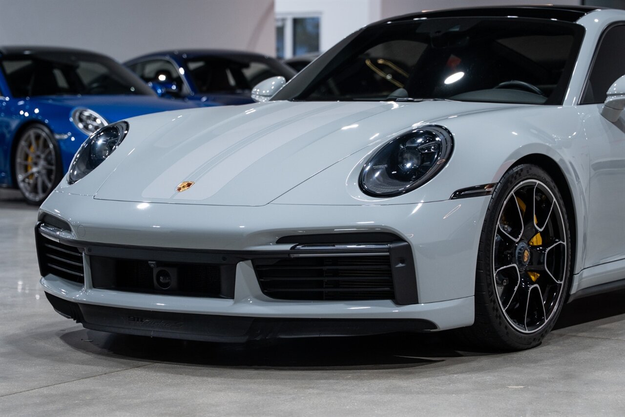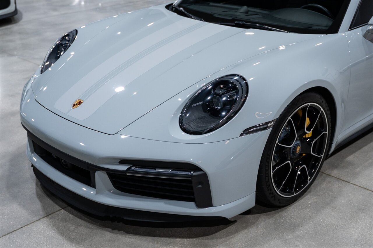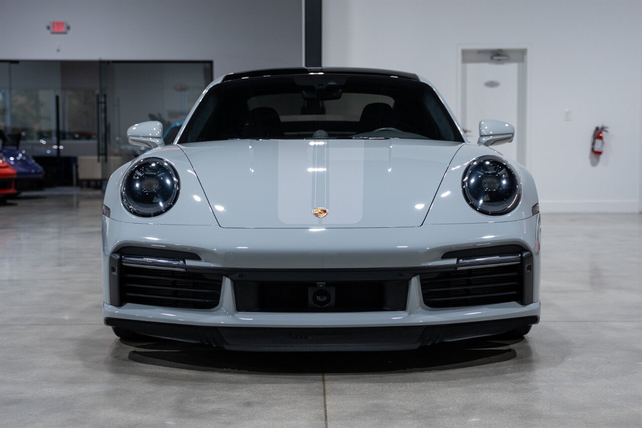 Florida Performance Cars is pleased to announce the arrival of this STUNNING 2021 Porsche 911 Turbo S finished in Paint to Sample SPORT CLASSIC GREY over Exclusive Manufaktur Leather Interior in Black and Slate Grey w/ 16,754 miles. This is a Clean CARFAX, pristine condition and exceptionally well optioned 992 Turbo S Coupe.