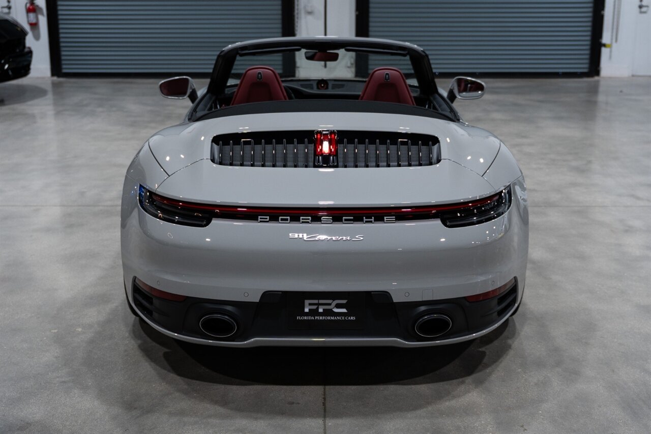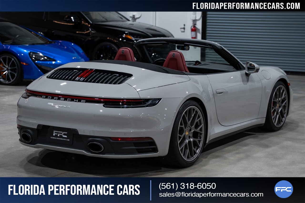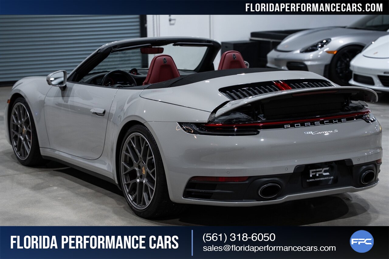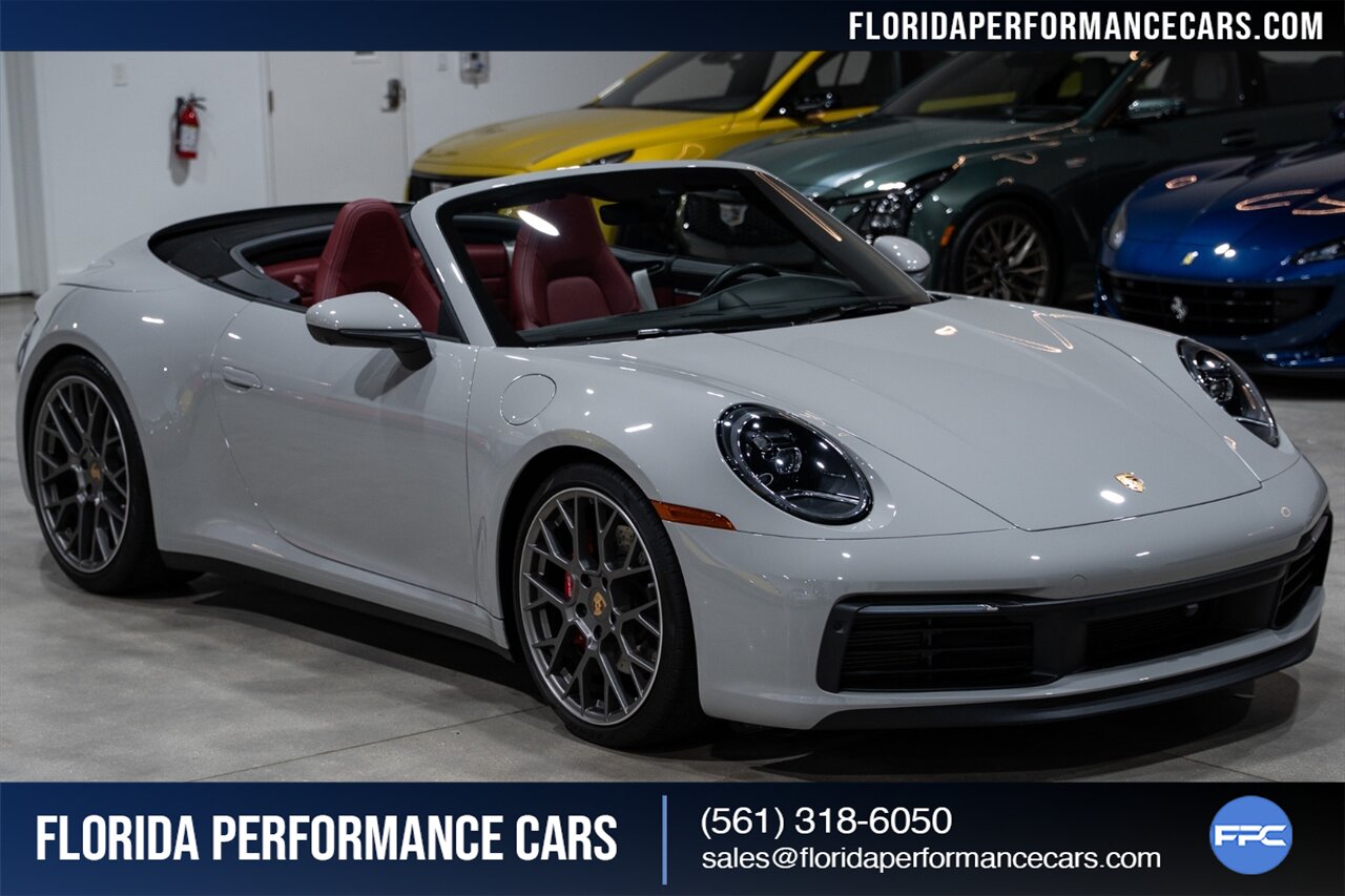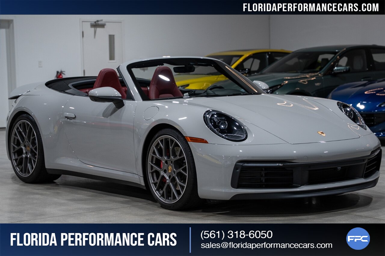 Florida Performance Cars is pleased to announce the arrival of this STUNNING 2022 Porsche 911 Carrera S Cabriolet finished in CHALK over Leather interior in Bordeaux Red/Black w/ ONLY 6,445 miles! This is a Clean CARFAX, pristine condition and exceptionally well optioned 992 Carrera S cab.