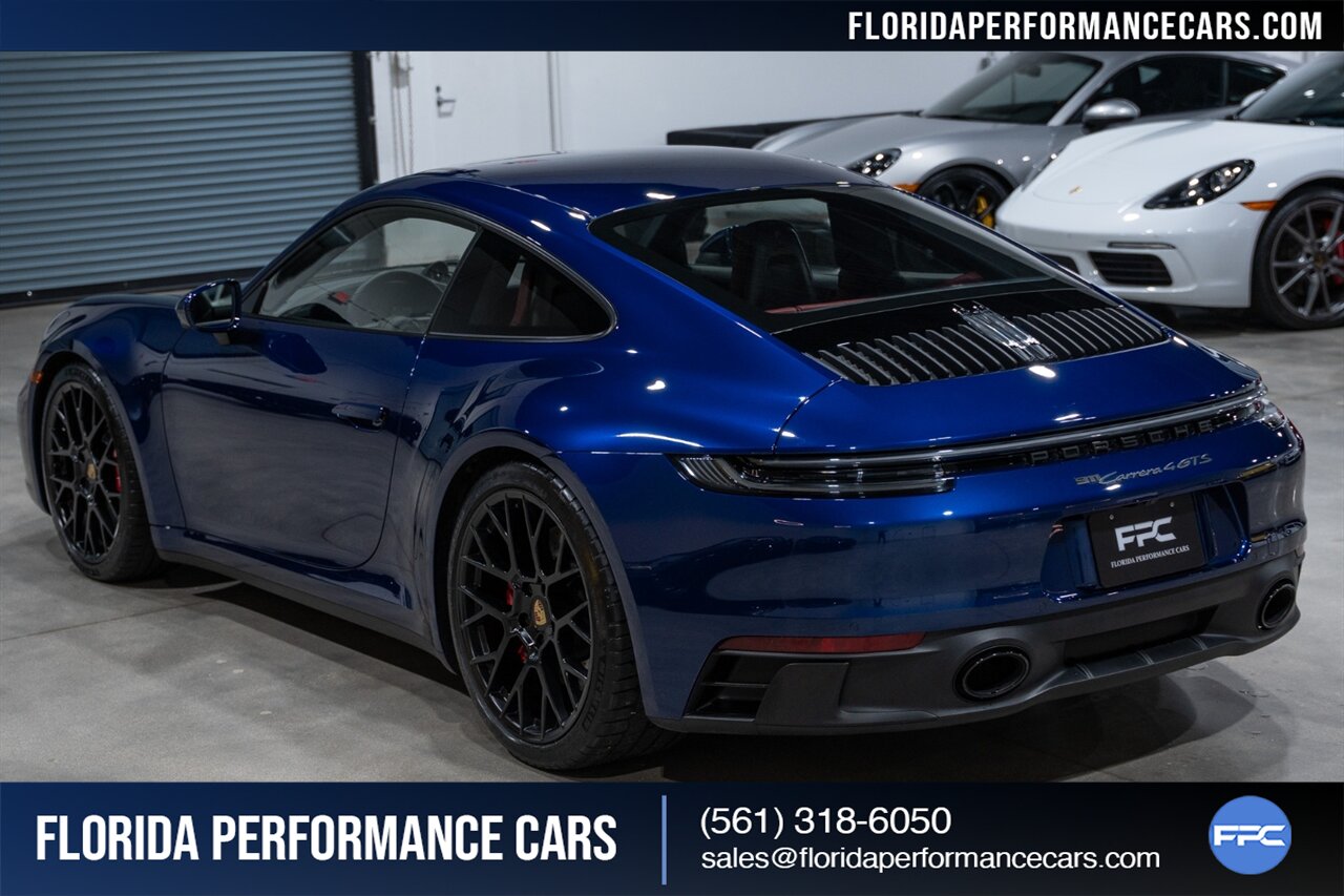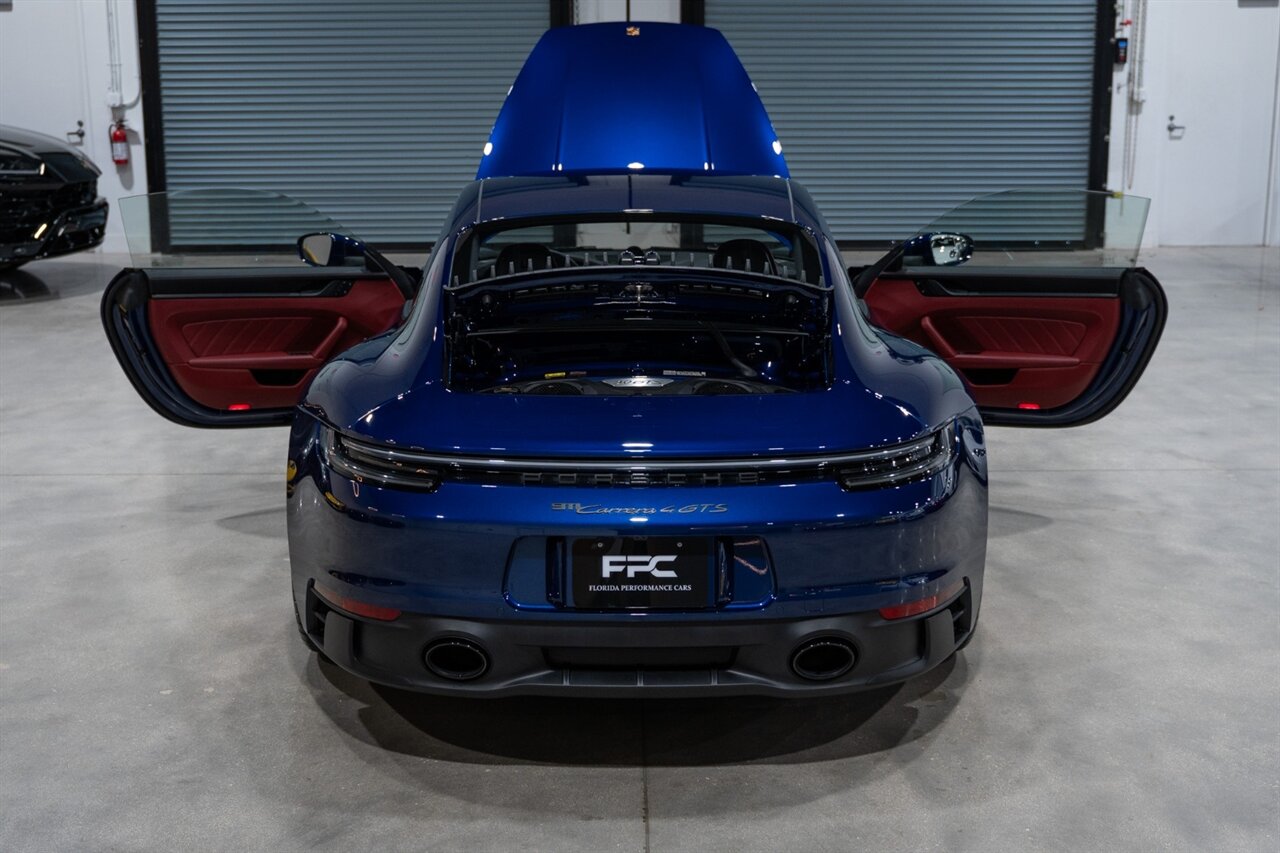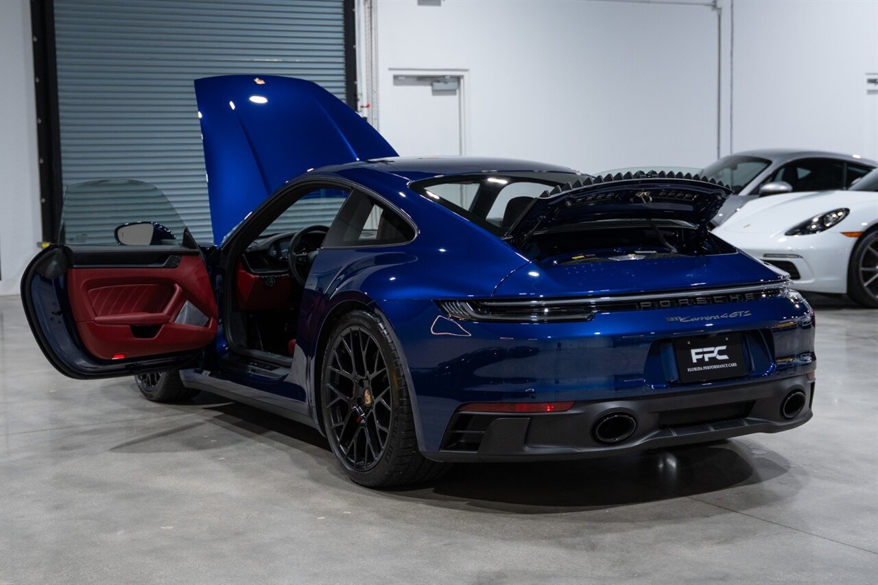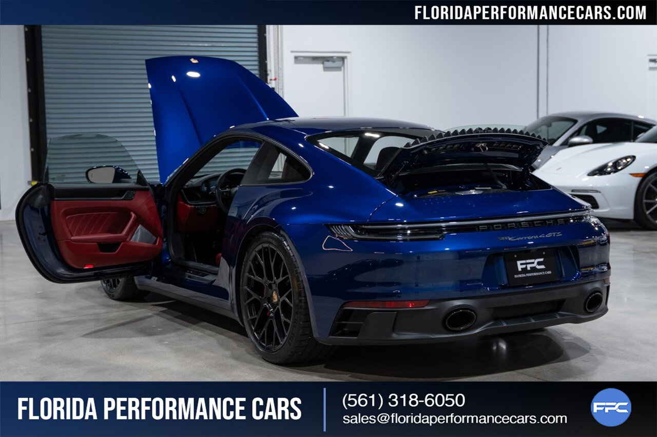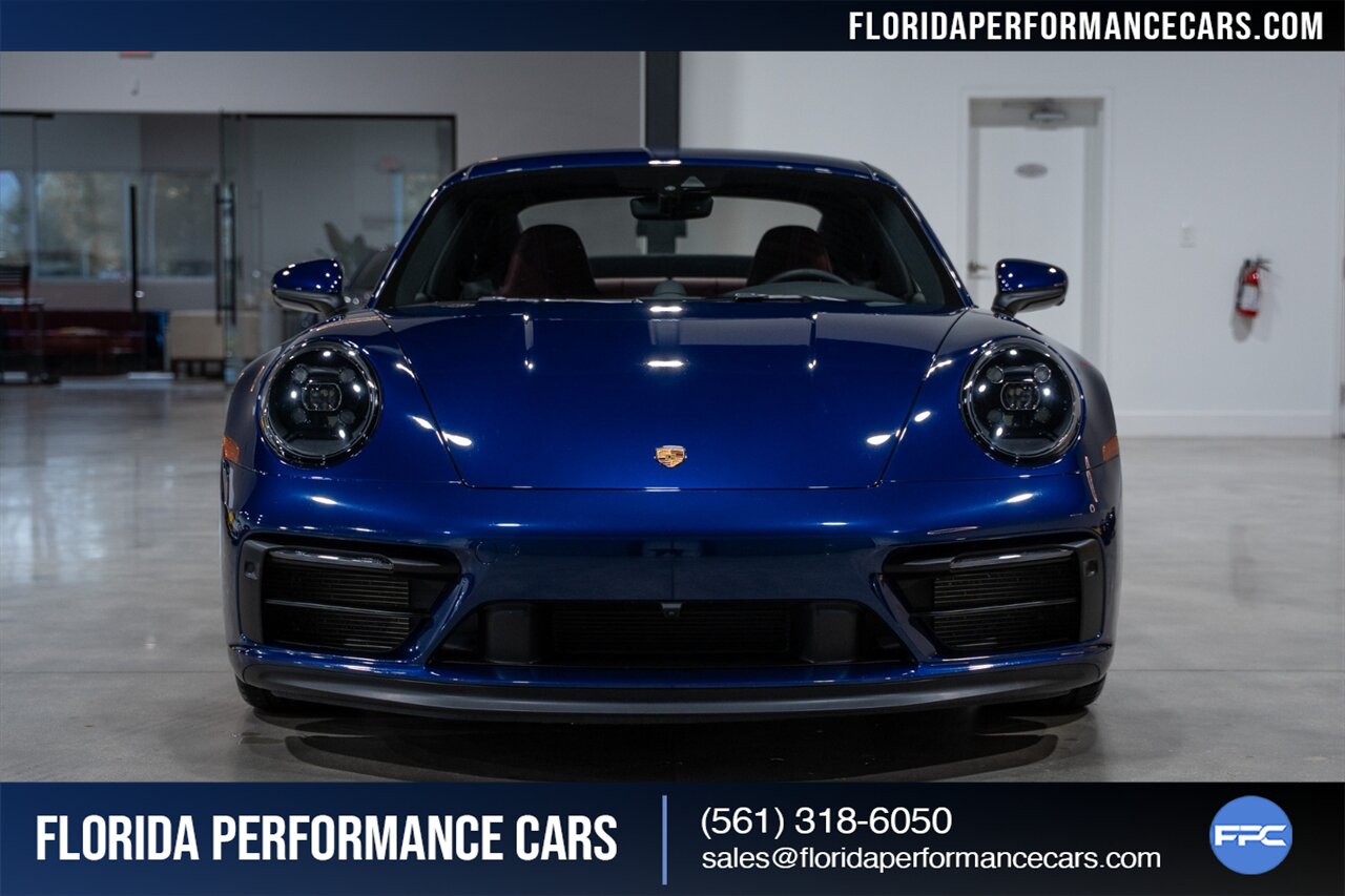 Florida Performance Cars is pleased to announce the arrival of this STUNNING 2023 Porsche 911 Carrera 4 GTS finished in Gentian Blue Metallic over Leather Interior in Black/Bordeaux Red w/ Only 9,642 miles! This is a 1-Owner, Clean CARFAX and EXCEPTIONALLY well optioned 992 Carrera 4 GTS.