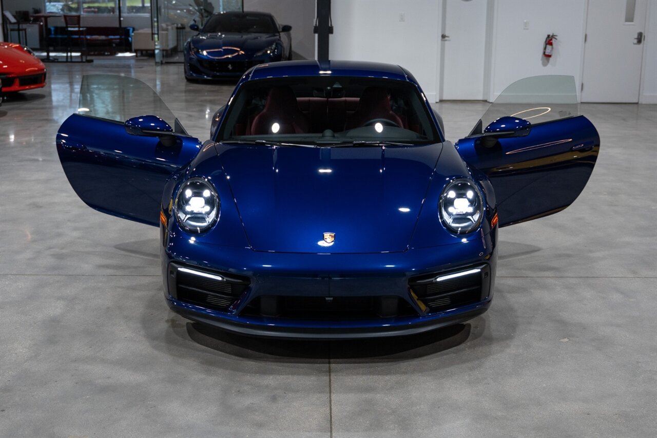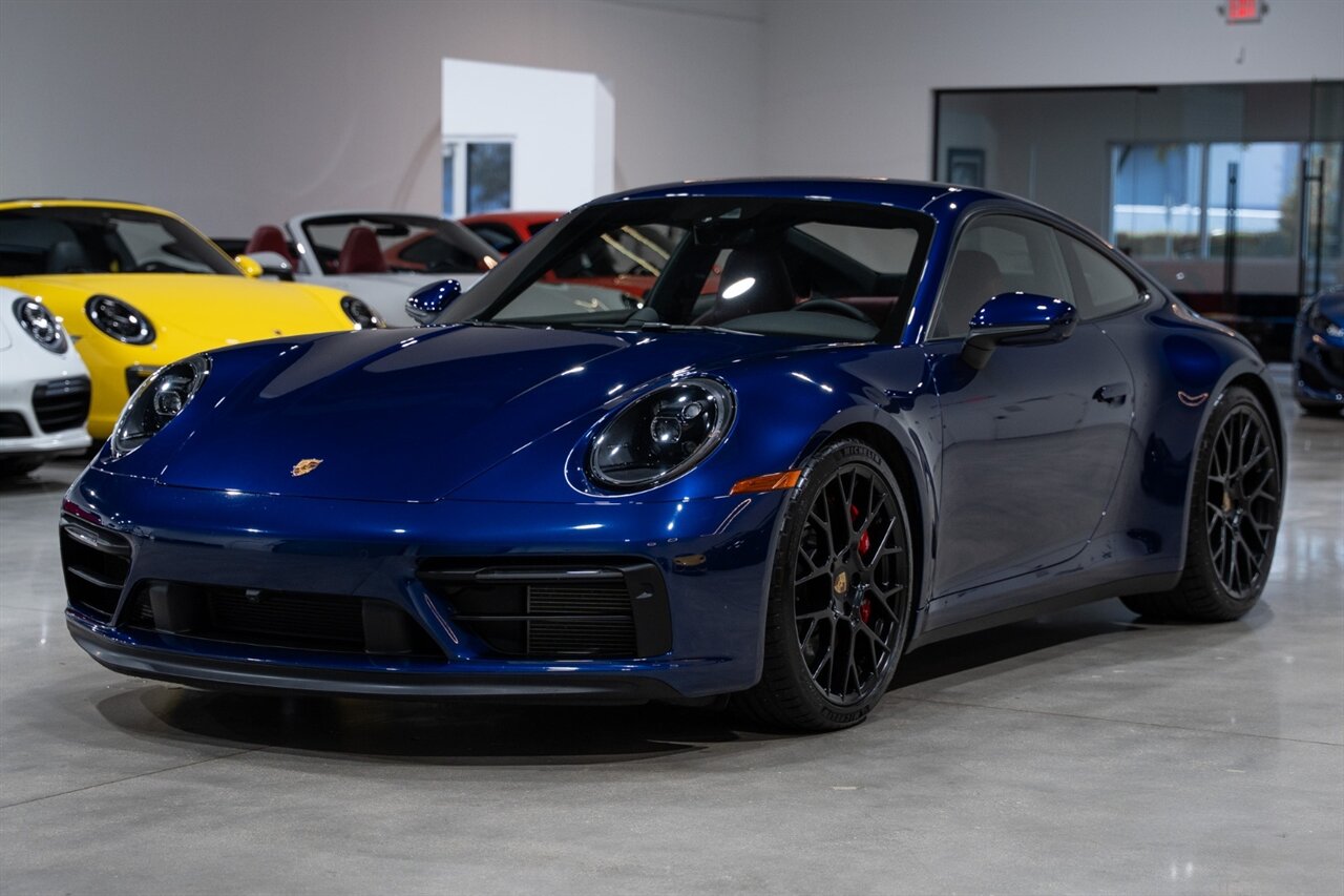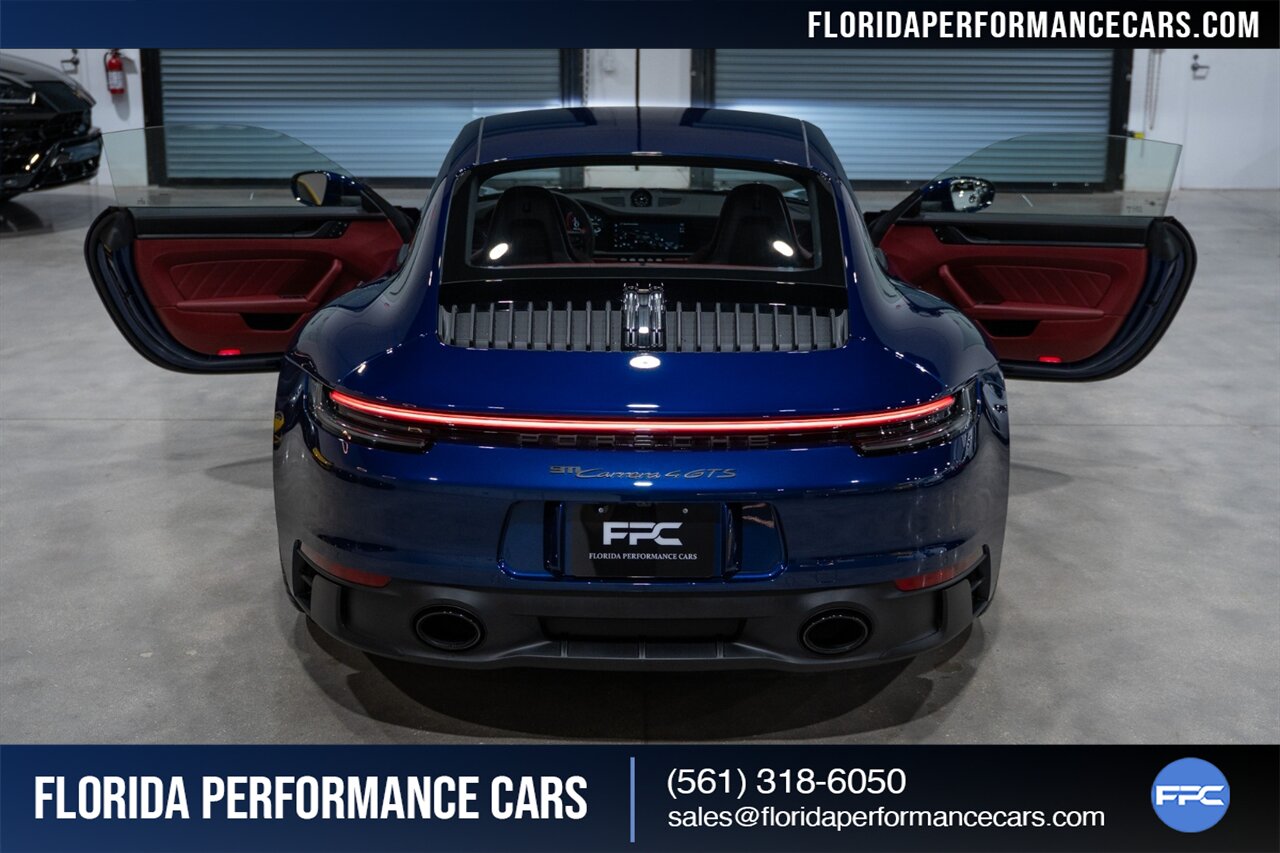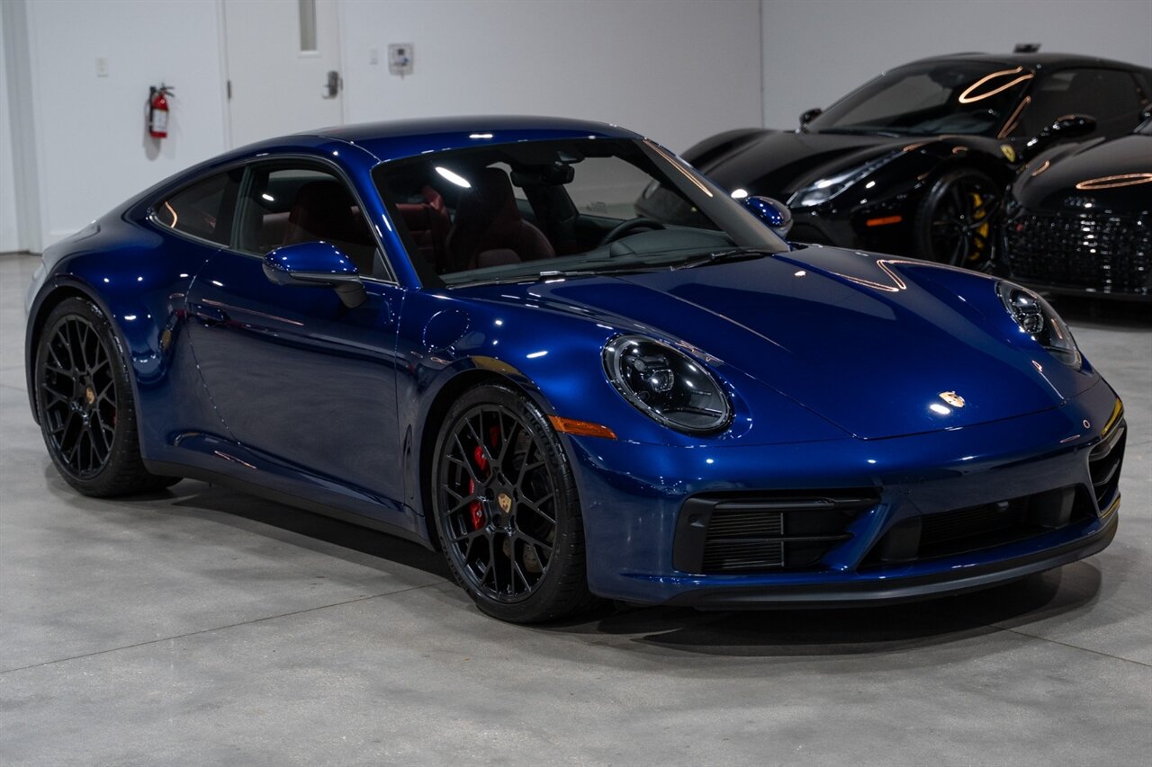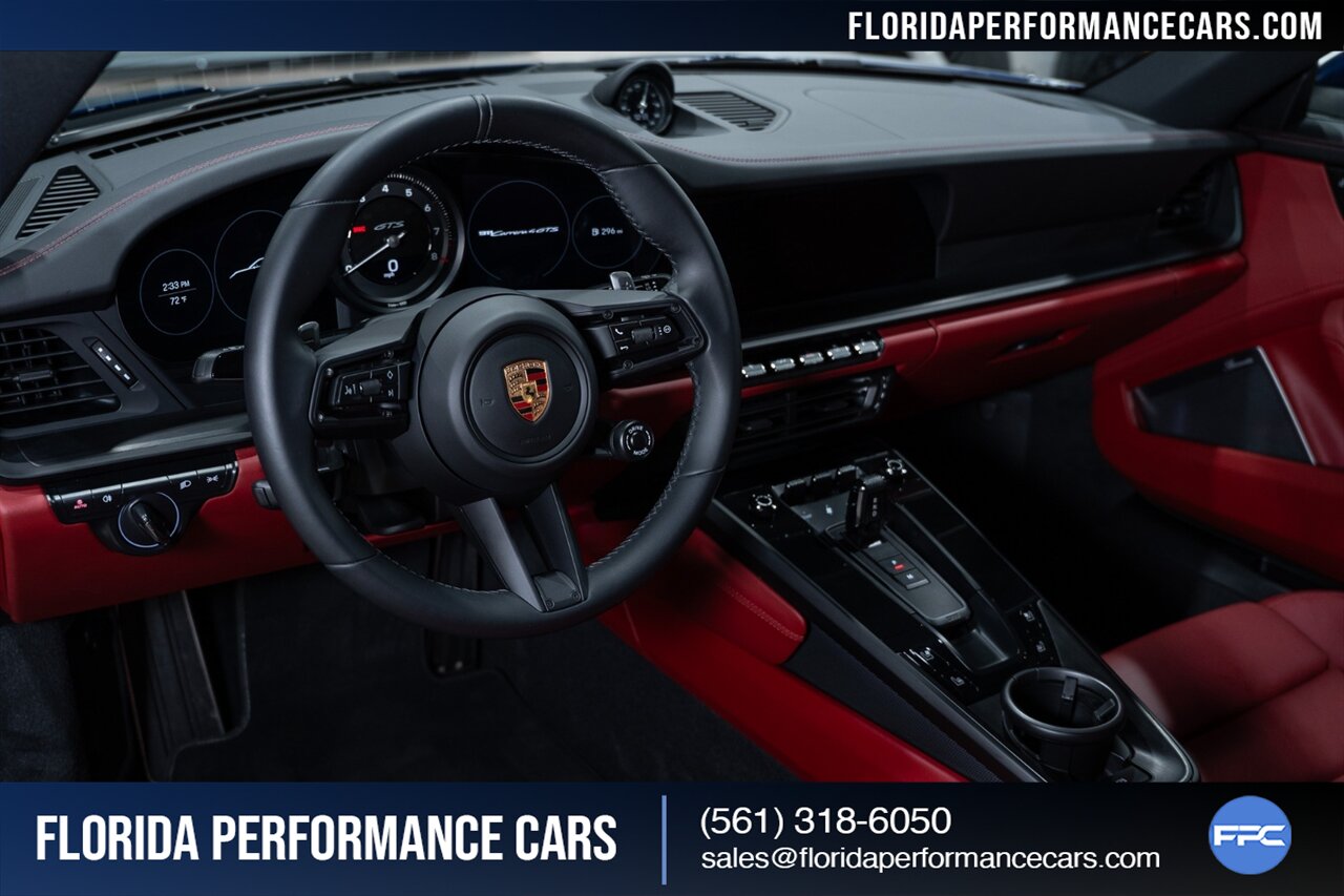 Florida Performance Cars is pleased to announce the arrival of this STUNNING 2023 Porsche 911 Carrera 4 GTS finished in Gentian Blue Metallic over Leather Interior in Black/Bordeaux Red w/ Only 9,642 miles! This is a 1-Owner, Clean CARFAX and EXCEPTIONALLY well optioned 992 Carrera 4 GTS.