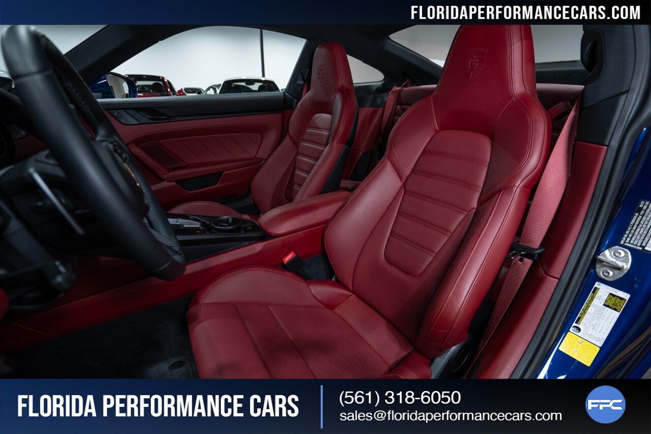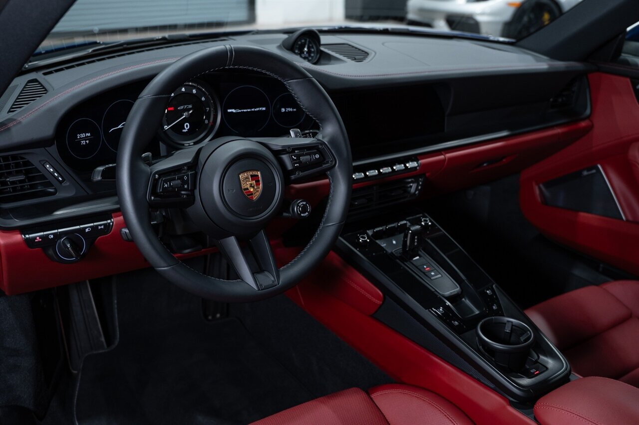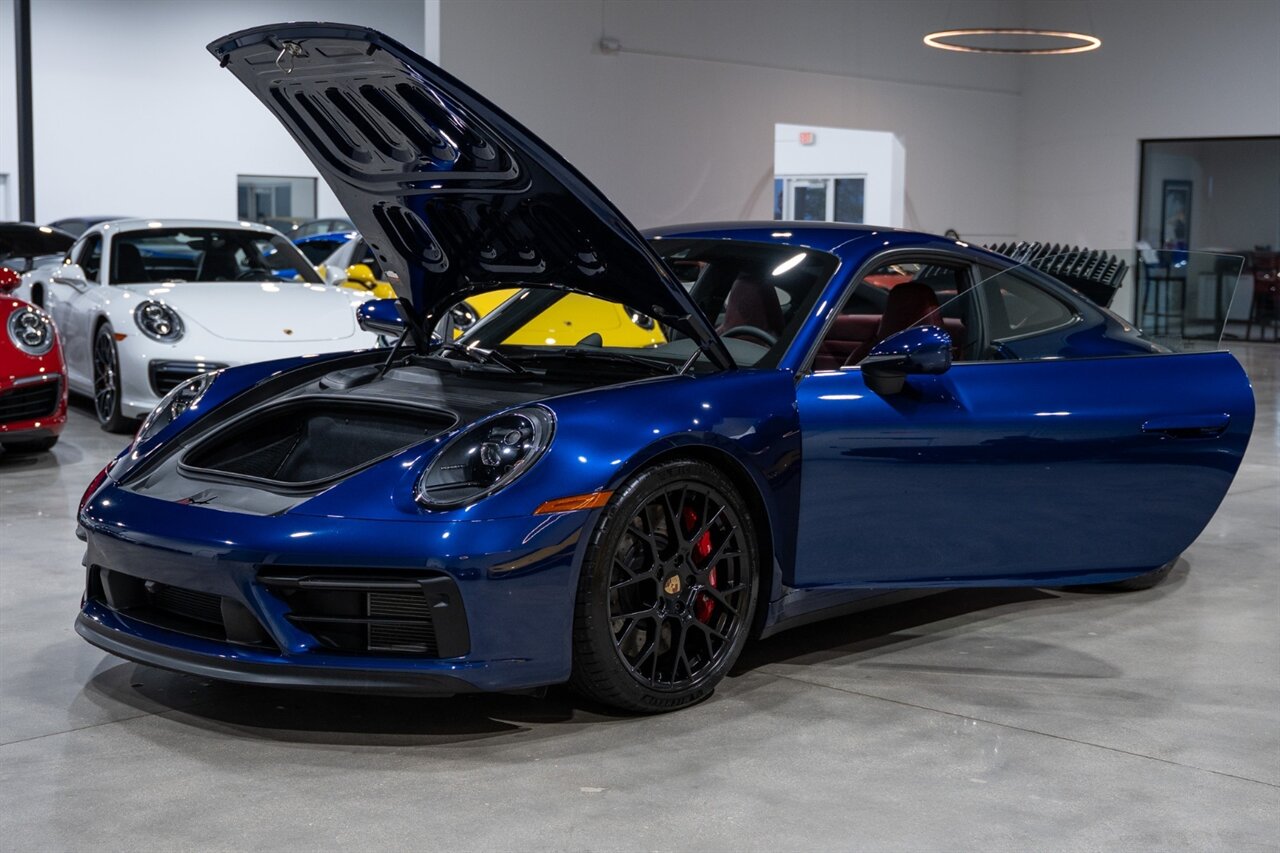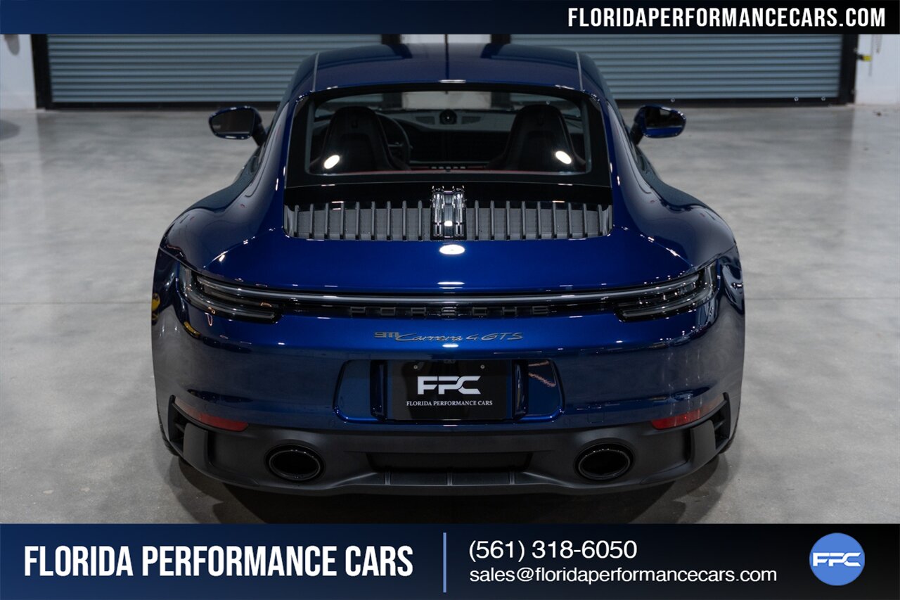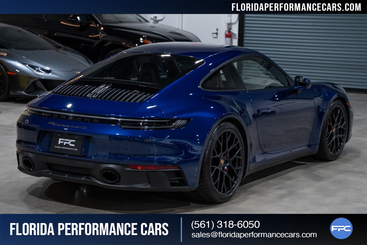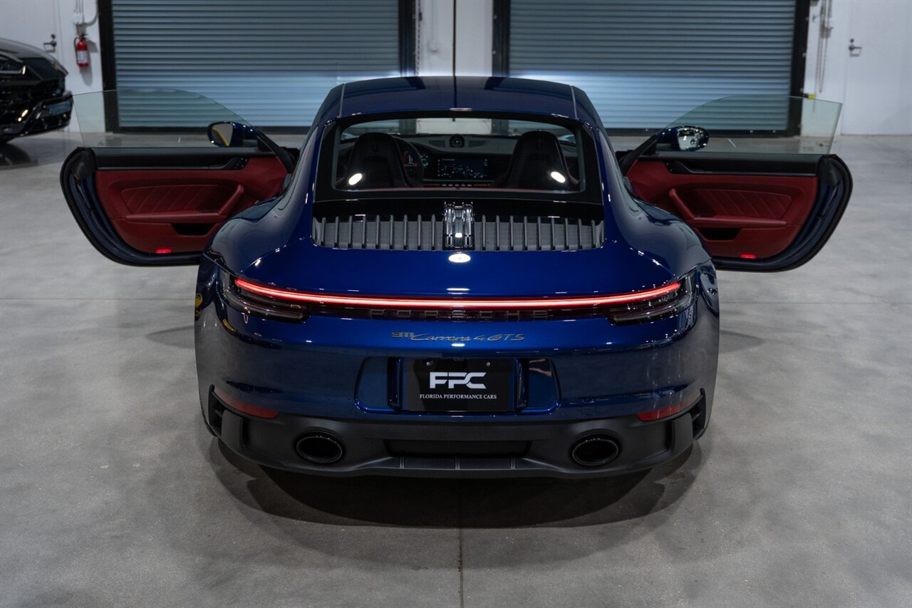 Florida Performance Cars is pleased to announce the arrival of this STUNNING 2023 Porsche 911 Carrera 4 GTS finished in Gentian Blue Metallic over Leather Interior in Black/Bordeaux Red w/ Only 9,642 miles! This is a 1-Owner, Clean CARFAX and EXCEPTIONALLY well optioned 992 Carrera 4 GTS.