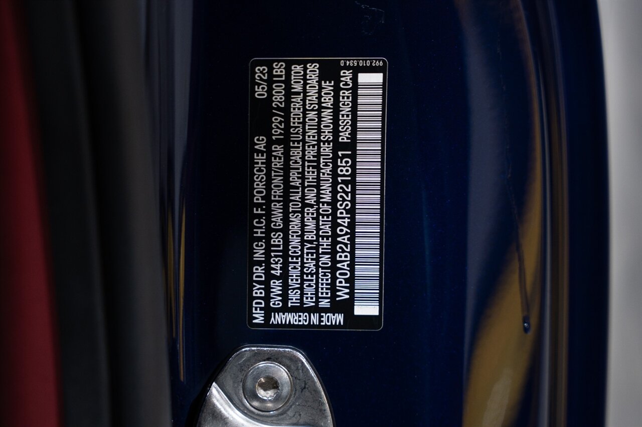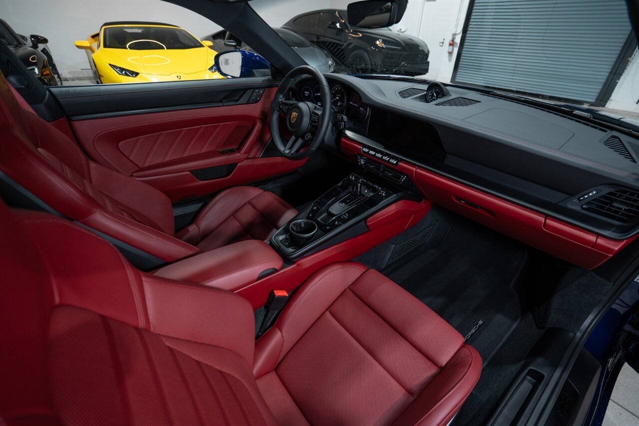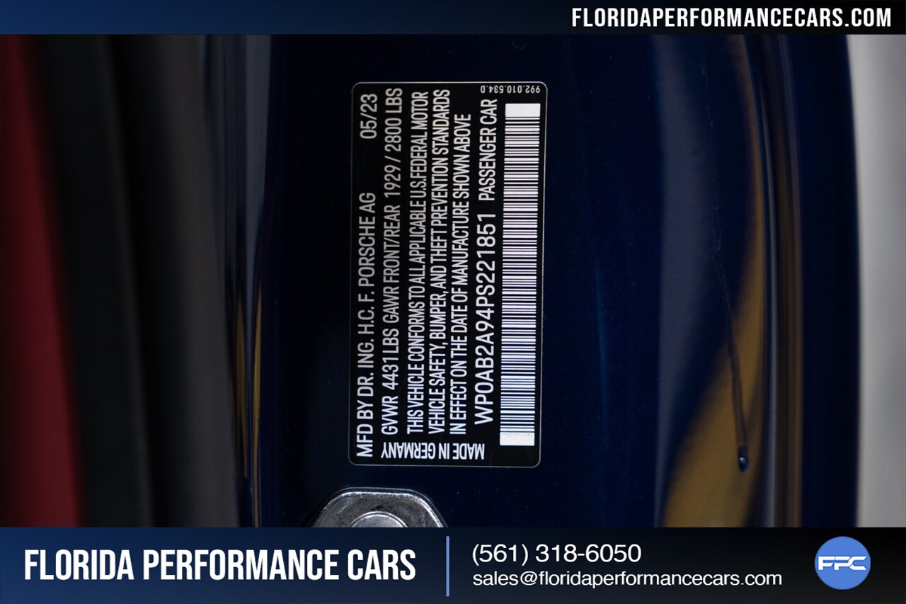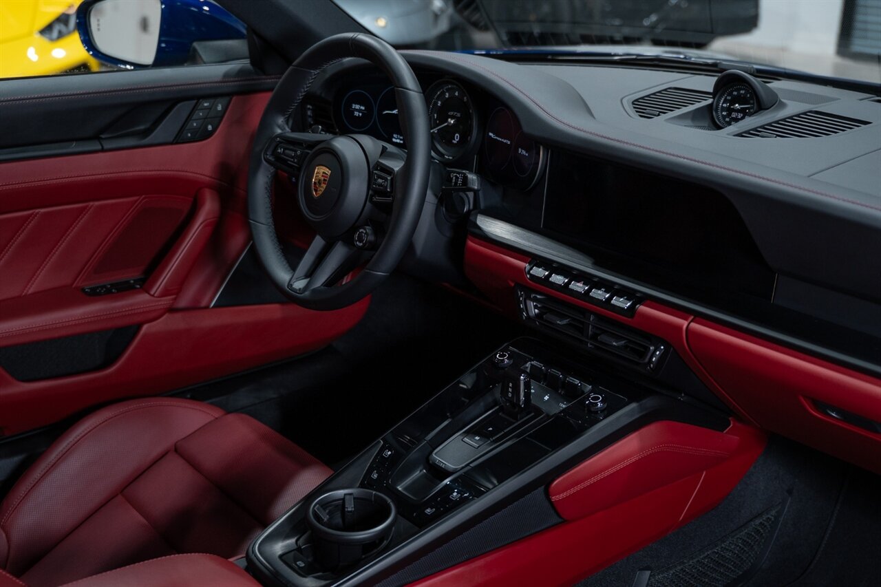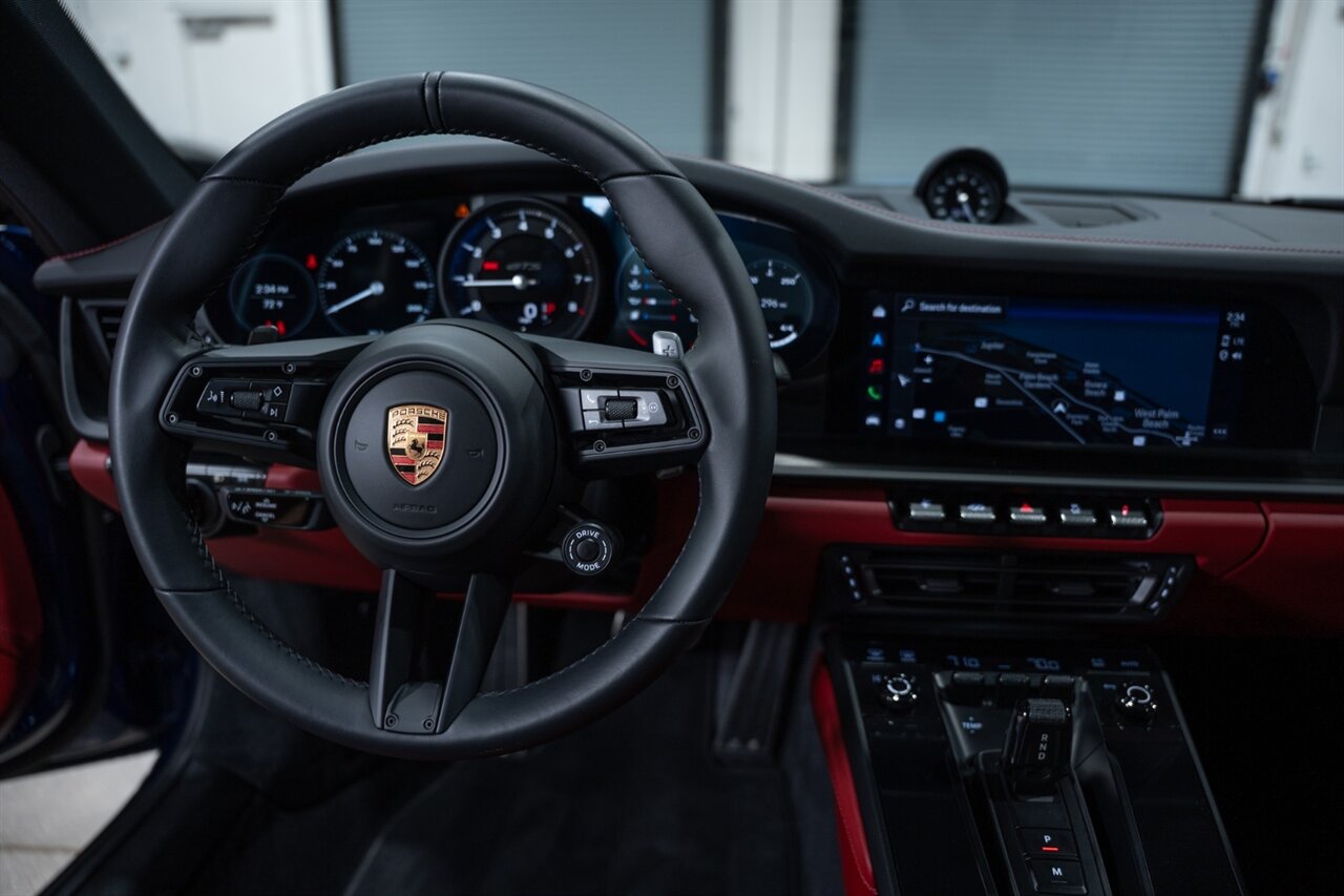Florida Performance Cars is pleased to announce the arrival of this STUNNING 2023 Porsche 911 Carrera 4 GTS finished in Gentian Blue Metallic over Leather Interior in Black/Bordeaux Red w/ Only 9,642 miles! This is a 1-Owner, Clean CARFAX and EXCEPTIONALLY well optioned 992 Carrera 4 GTS.