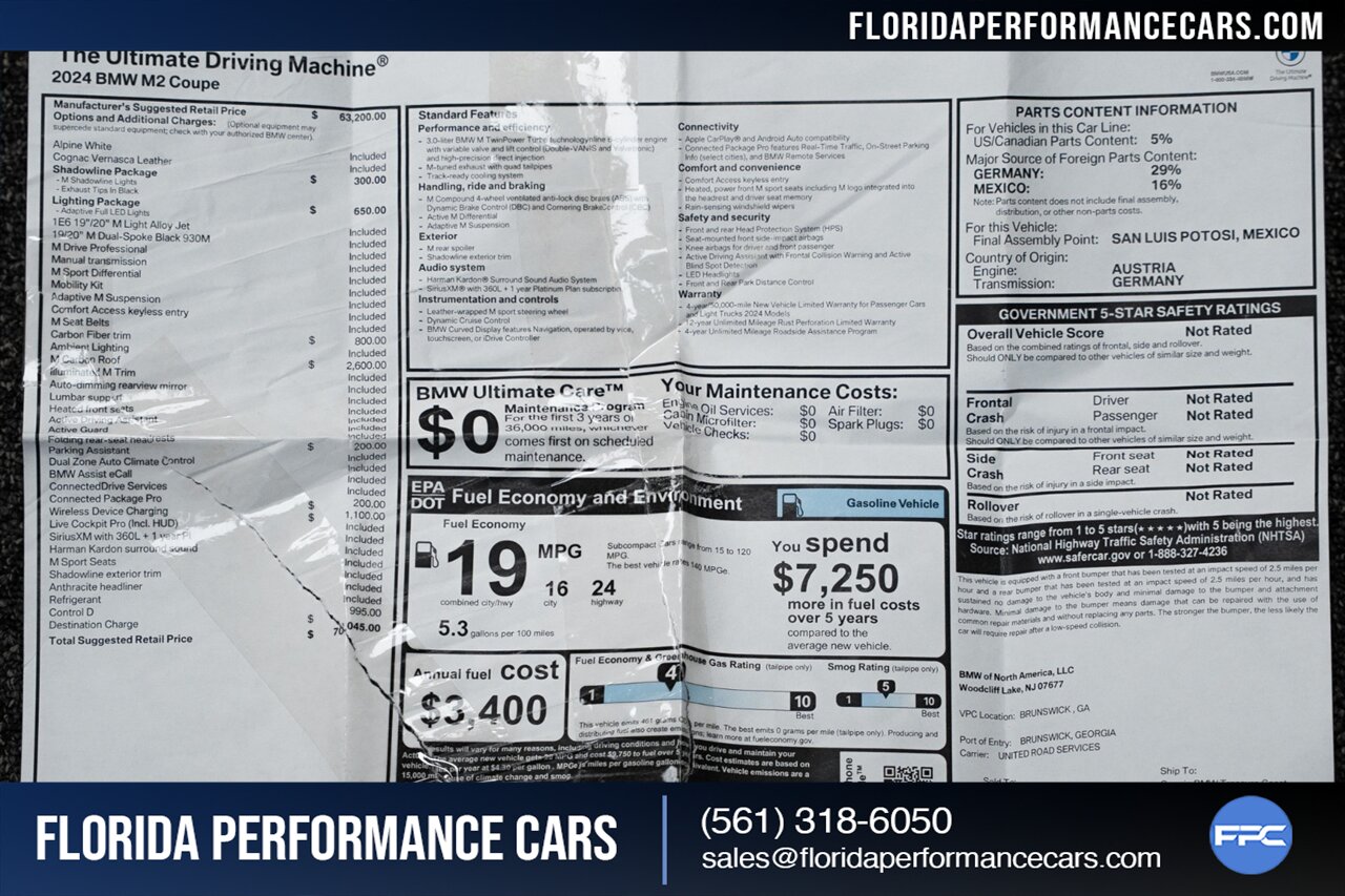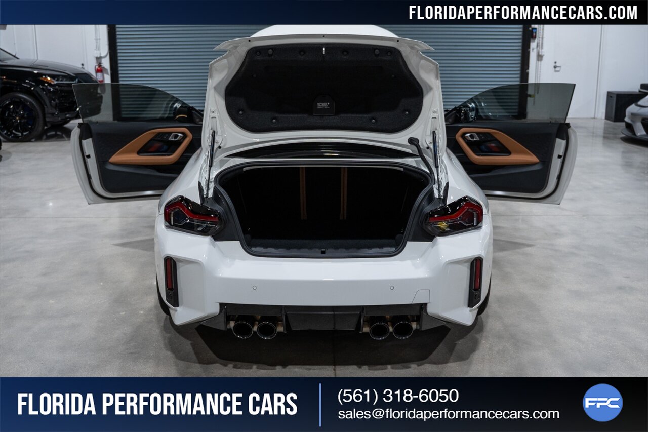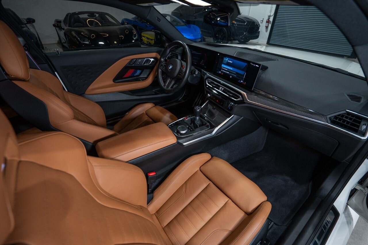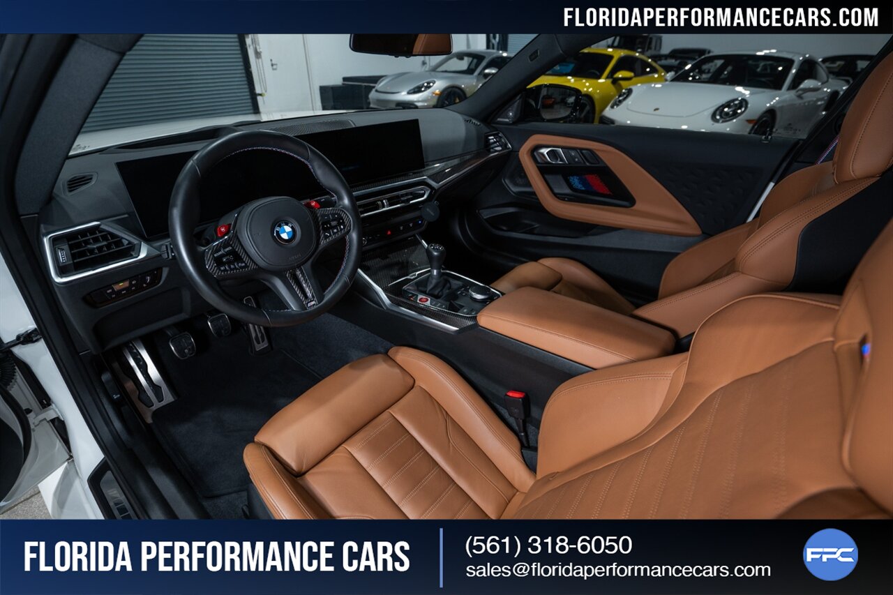 Florida Performance Cars is pleased to announce the arrival of this STUNNING 2024 BMW M2 finished in Alpine White over Cognac Vernasca Leather w/ 6-Speed Manual transmission and 19,852 miles. This is a 1-Owner, Clean CARFAX and well kept M2.
