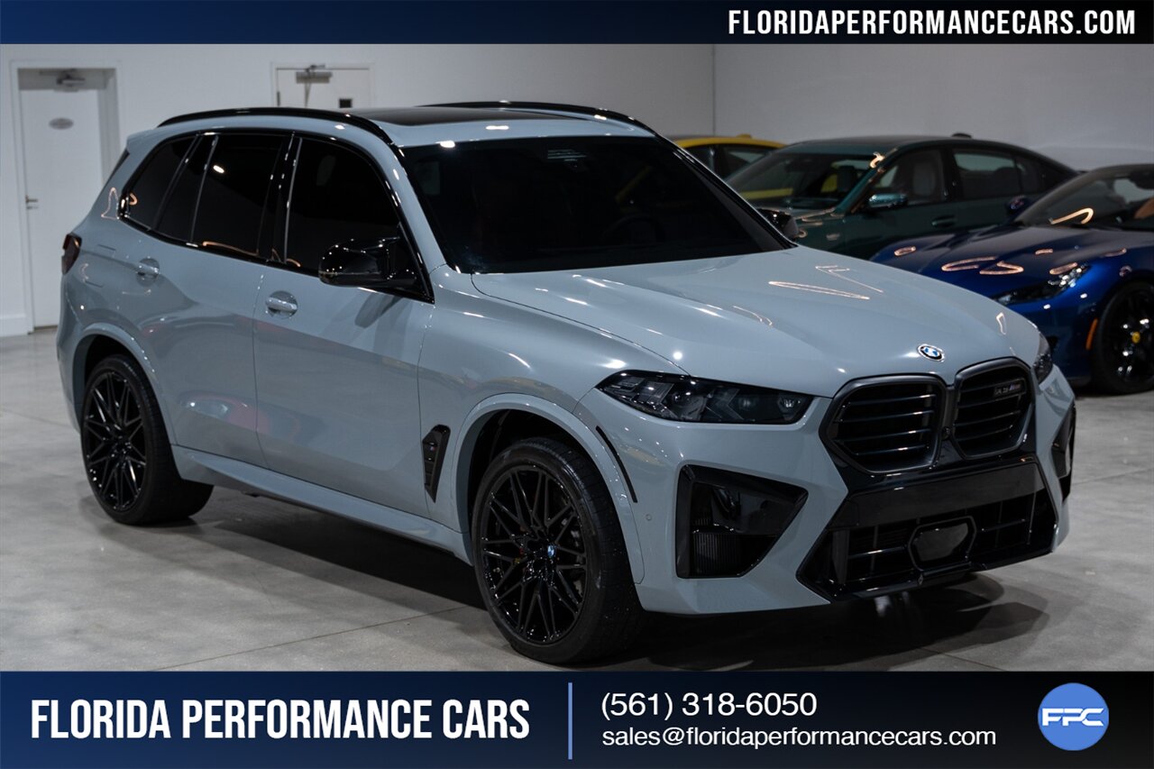 Florida Performance Cars is pleased to announce the arrival of this STUNNING 2024 BMW X5 M Competition finished in BROOKLYN GREY Metallic over Sakhir Orange & Black Full Merino Leather w/ Only 10,311 miles! This is a 1-Owner, Clean CARFAX and exceptionally well optioned X5 M Comp.