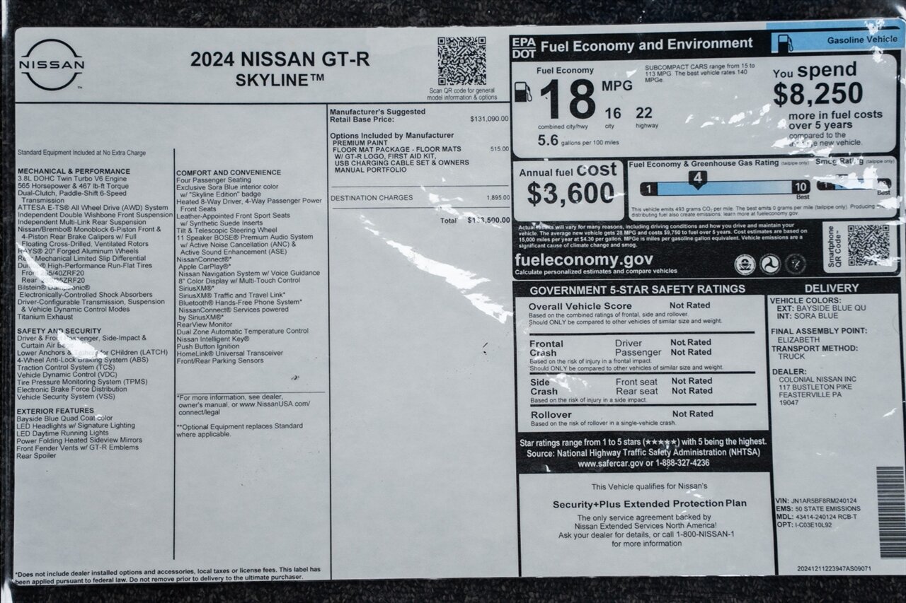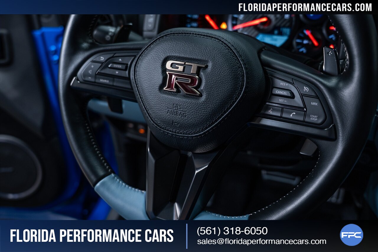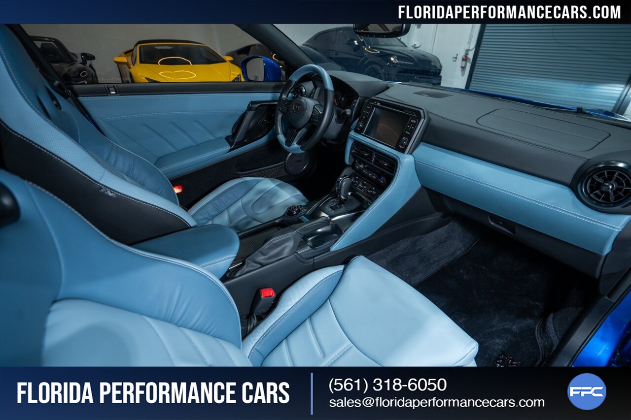 Florida Performance Cars is pleased to announce the arrival of this STUNNING 2024 Nissan GT-R Skyline Edition finished in iconic Bayside Blue over EXCLUSIVE Sora Blue interior w/ ONLY 1,306 miles! This is a 1-Owner, Clean CARFAX and still practically brand new R35 Skyline Edition GT-R.
