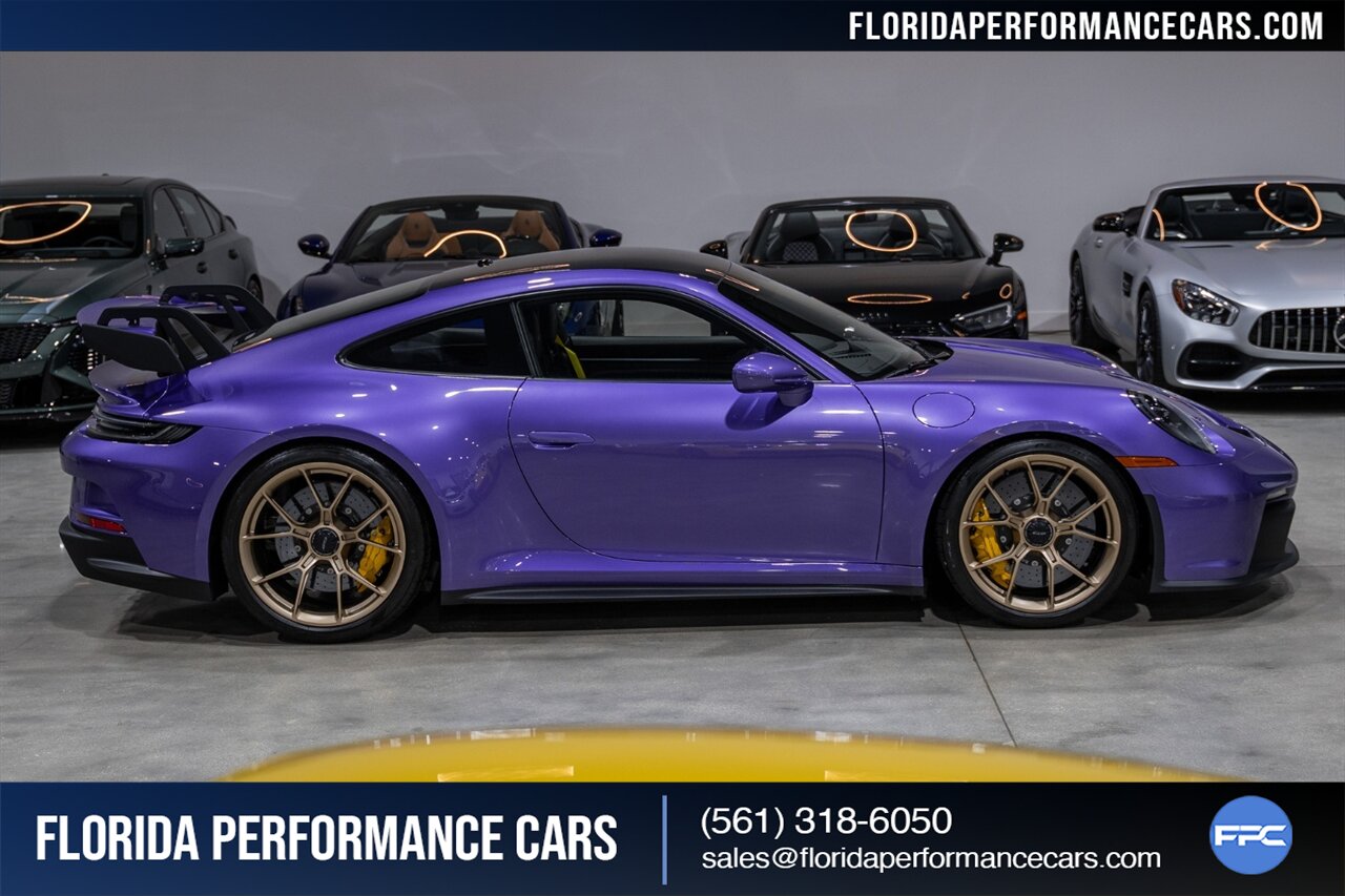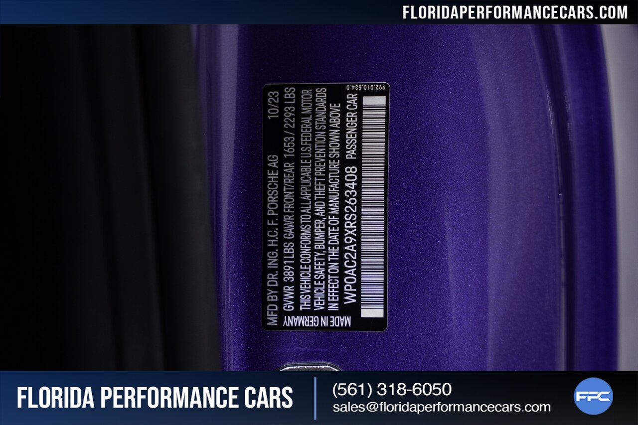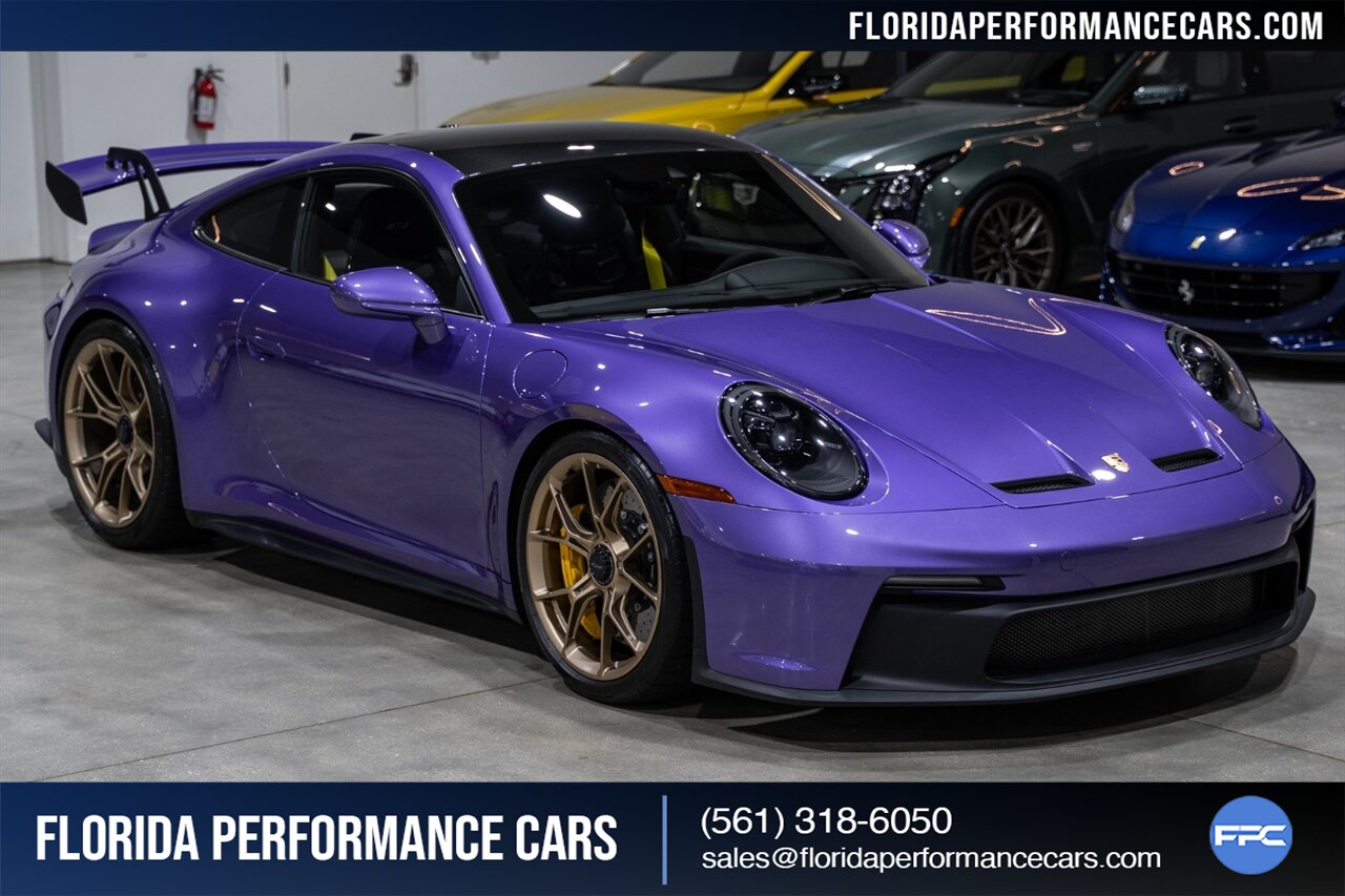 Florida Performance Cars is pleased to announce the arrival of this STUNNING 2024 Porsche 911 GT3 finished in ultra rare Paint to Sample Viola Purple Metallic over Black Leather w/ GT Silver Stitching, 6-Speed manual transmission, and ONLY 344 Original miles!!