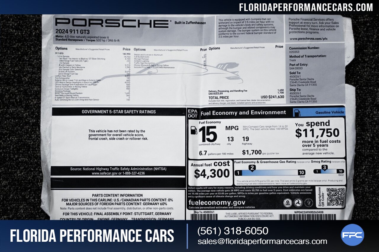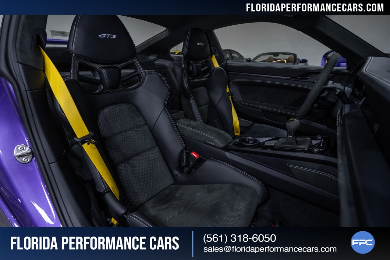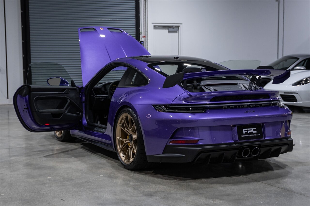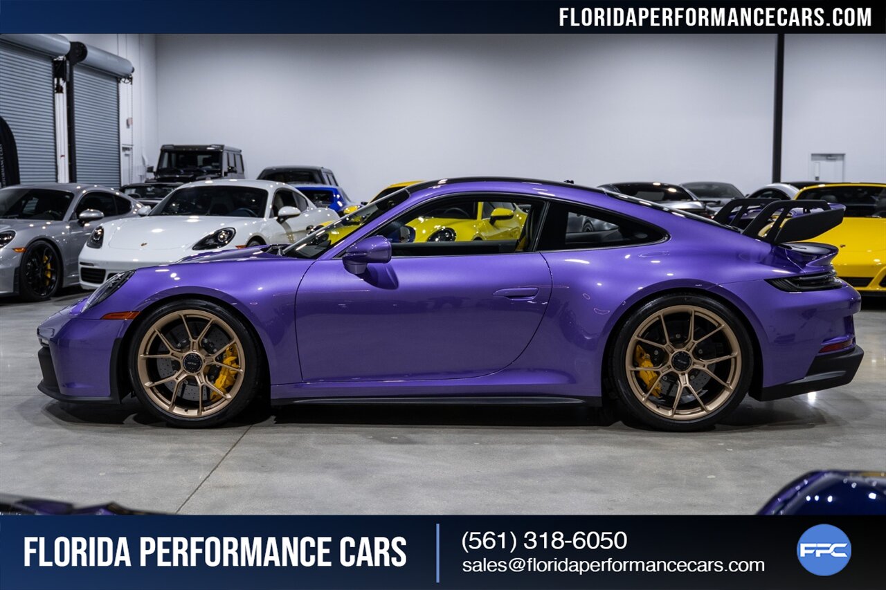 Florida Performance Cars is pleased to announce the arrival of this STUNNING 2024 Porsche 911 GT3 finished in ultra rare Paint to Sample Viola Purple Metallic over Black Leather w/ GT Silver Stitching, 6-Speed manual transmission, and ONLY 344 Original miles!!