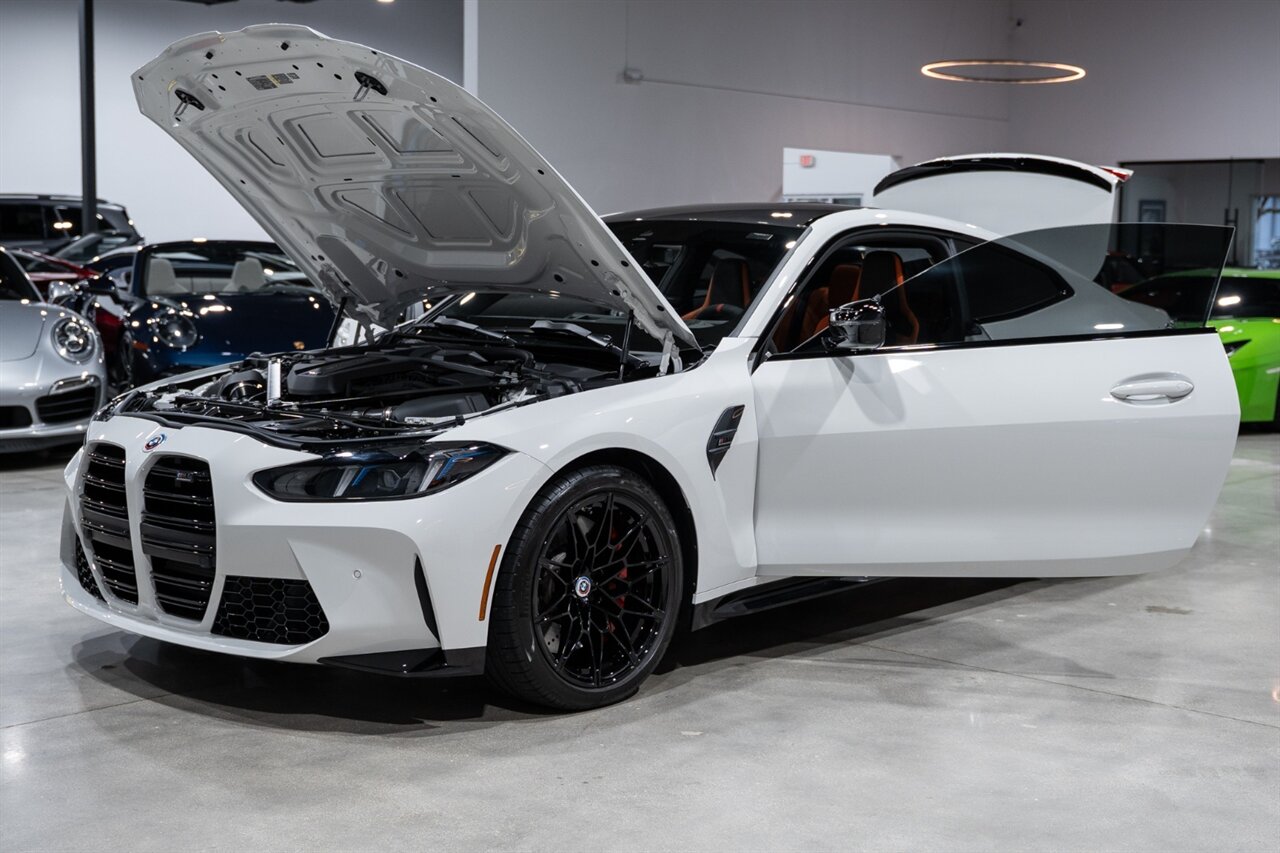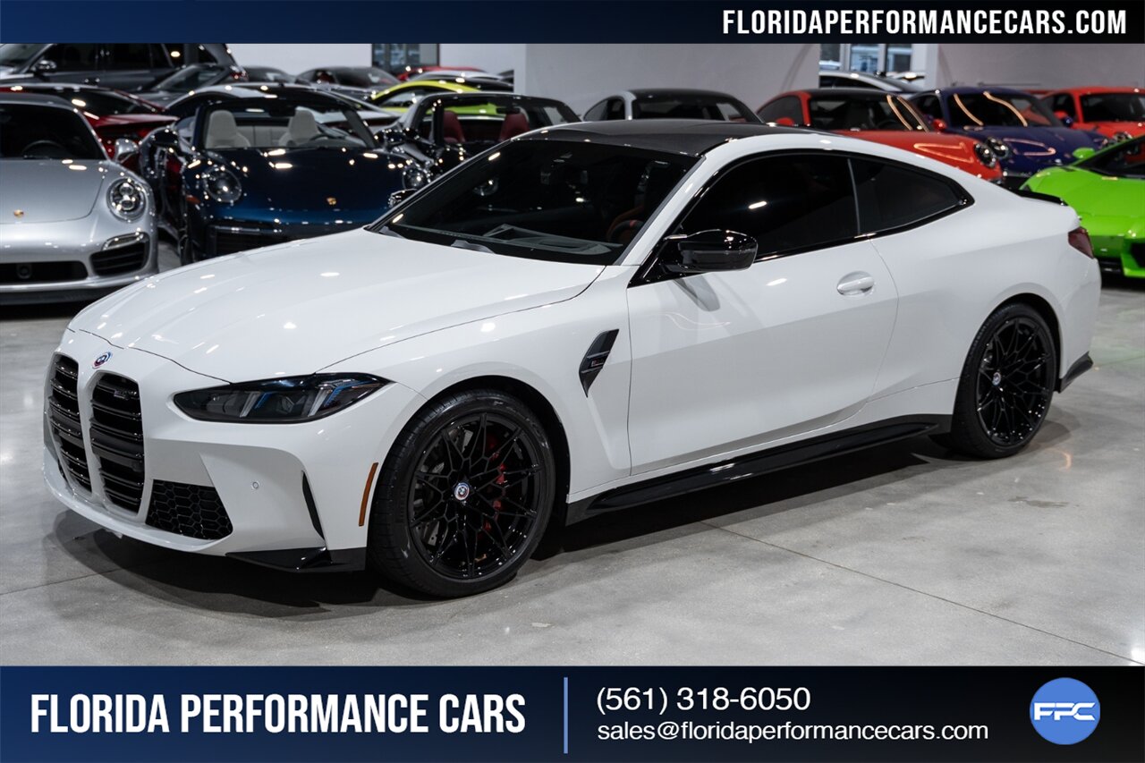 Florida Performance Cars is pleased to announce the arrival of this STUNNING 2025 BMW M4 Competition xDrive finished in Alpine White over Kyalami Orange & Black Merino Leather w/ Only 3,338 miles!